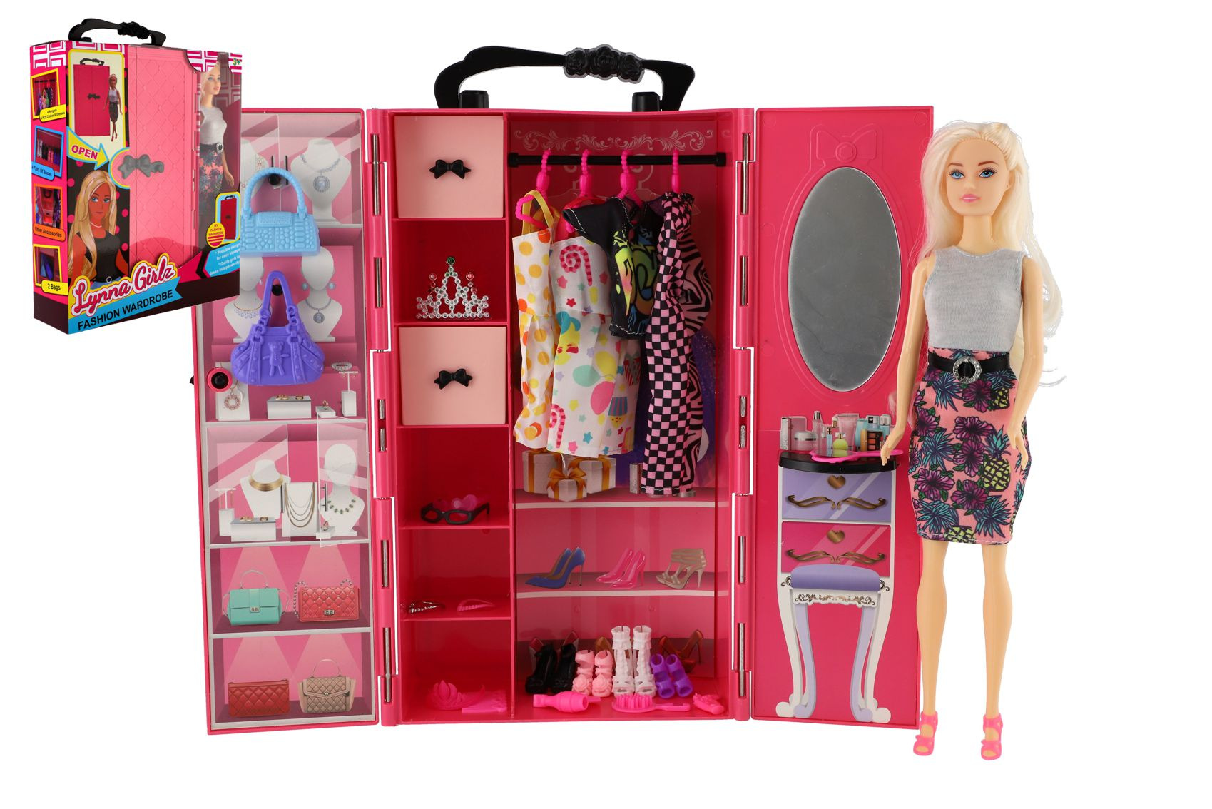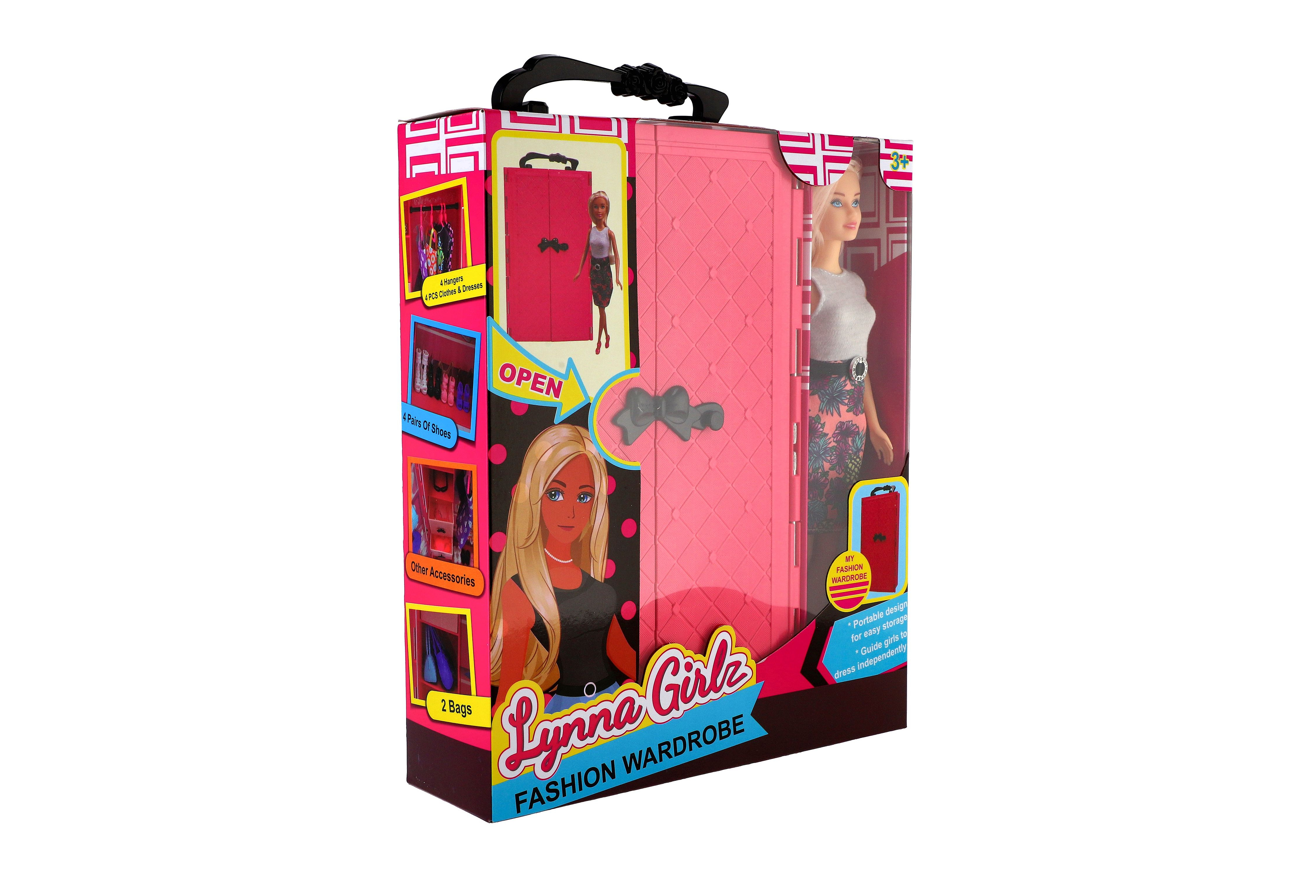 Opis Teddies Lalka Lynna z szafą plastikową 30cm z akcesoriami w pudełku 26x32x8cm
