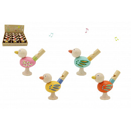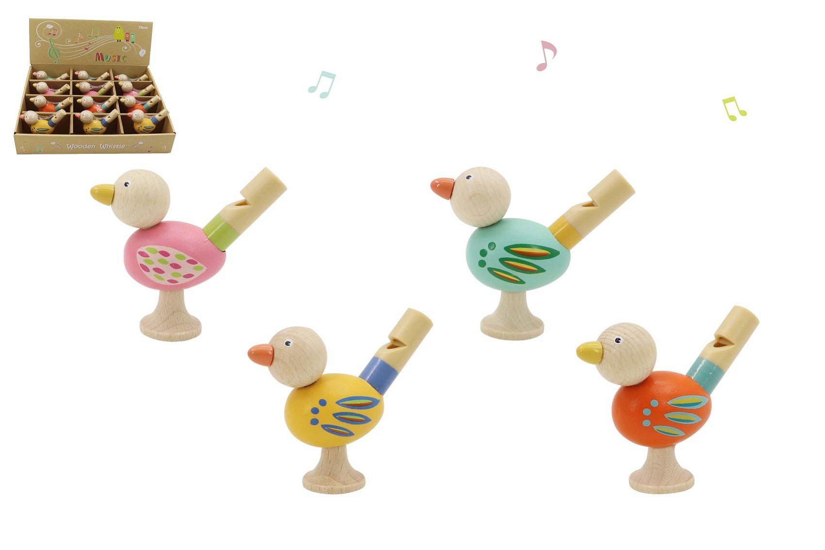 Píšťalka dřevěná ptáček 4 barvy 12ks v boxu