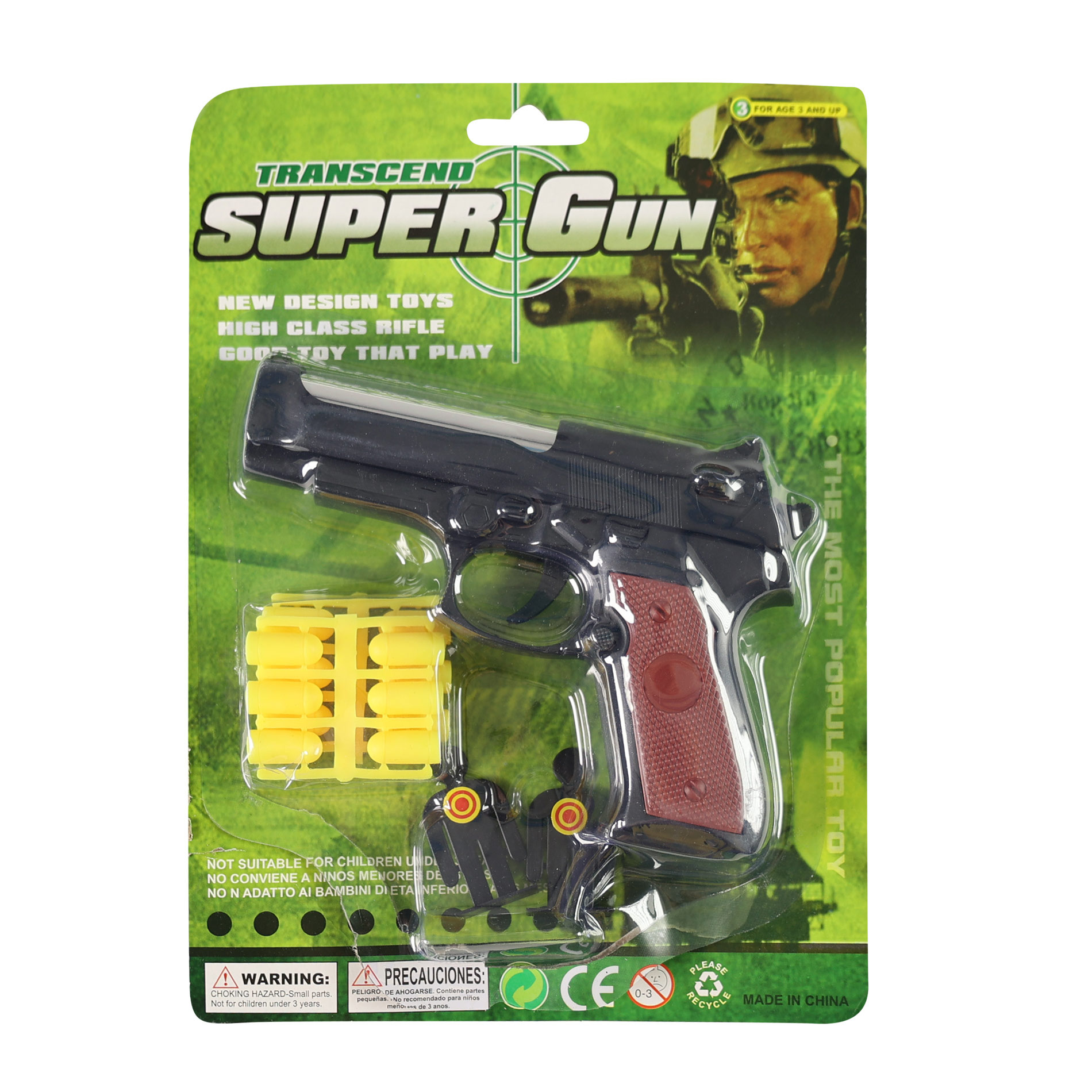 Plastová pistole na gumové náboje pro všechny malé milovníky zbraní! Balení obsahuje pistol, 12 gumových nábojů a 2 terče v podobě stojících figurek. S tímto setem si zaručeně vyhraješ a naučíš se i parádně střílet!
