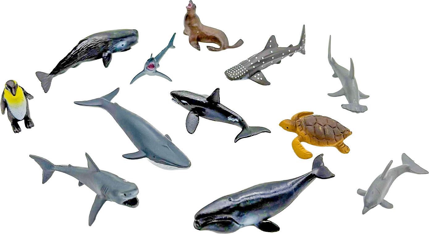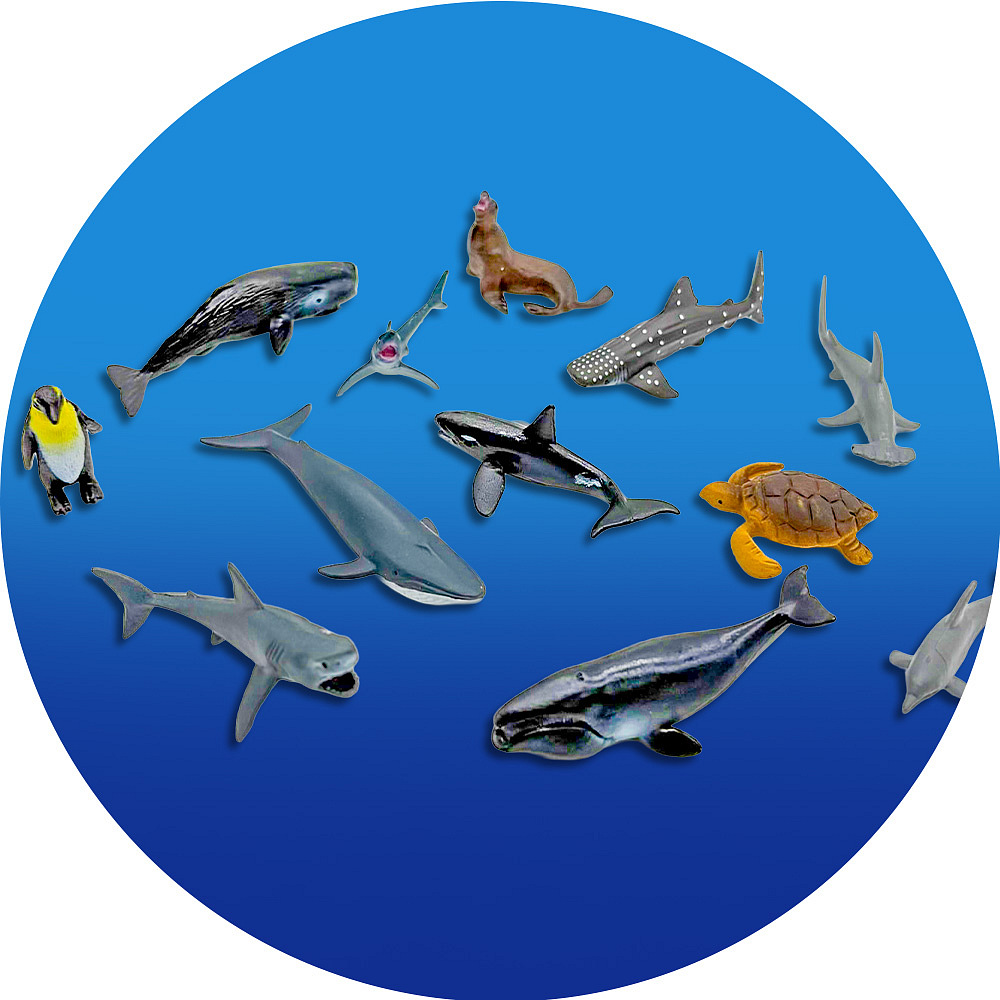 Modely mořských zvířátek: K sadě jsou přiloženy i malé figurky zvířátek, která se promítají na plátno. Děti si tak mohou zvířátka osahat, hrát si s nimi a porovnávat je s obrázky na stěně.
