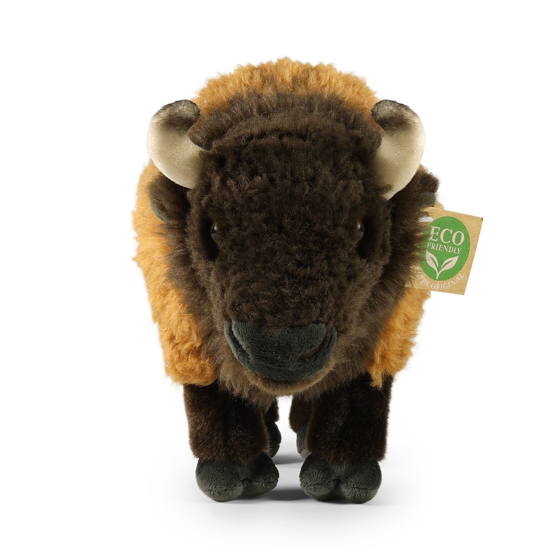 Plyšový bizon měří 30 cm a díky těm nejkvalitnějším materiálům se řadí do Exkluzivní kolekce plyšových hraček značky Rappa. Díky ručnímu zpracování každého kusu navíc vypadá jako živý. Proč označení ECO-FRIENDLY? Rappa si je vědoma všech dopadů na životního prostředí, zaměřuje se na udržitelnost a omezení používání plastů na minimum. Proto je výplň hraček vyrobena z recyklovaných materiálů, zejména PET lahví. Ta je však zcela nezávadná a vhodná i pro děti od narození. FUN FACT: Věděli jste, že bizon je tak silný, že dokáže běžet rychlostí až 60 km/h, přestože váží i přes tunu?