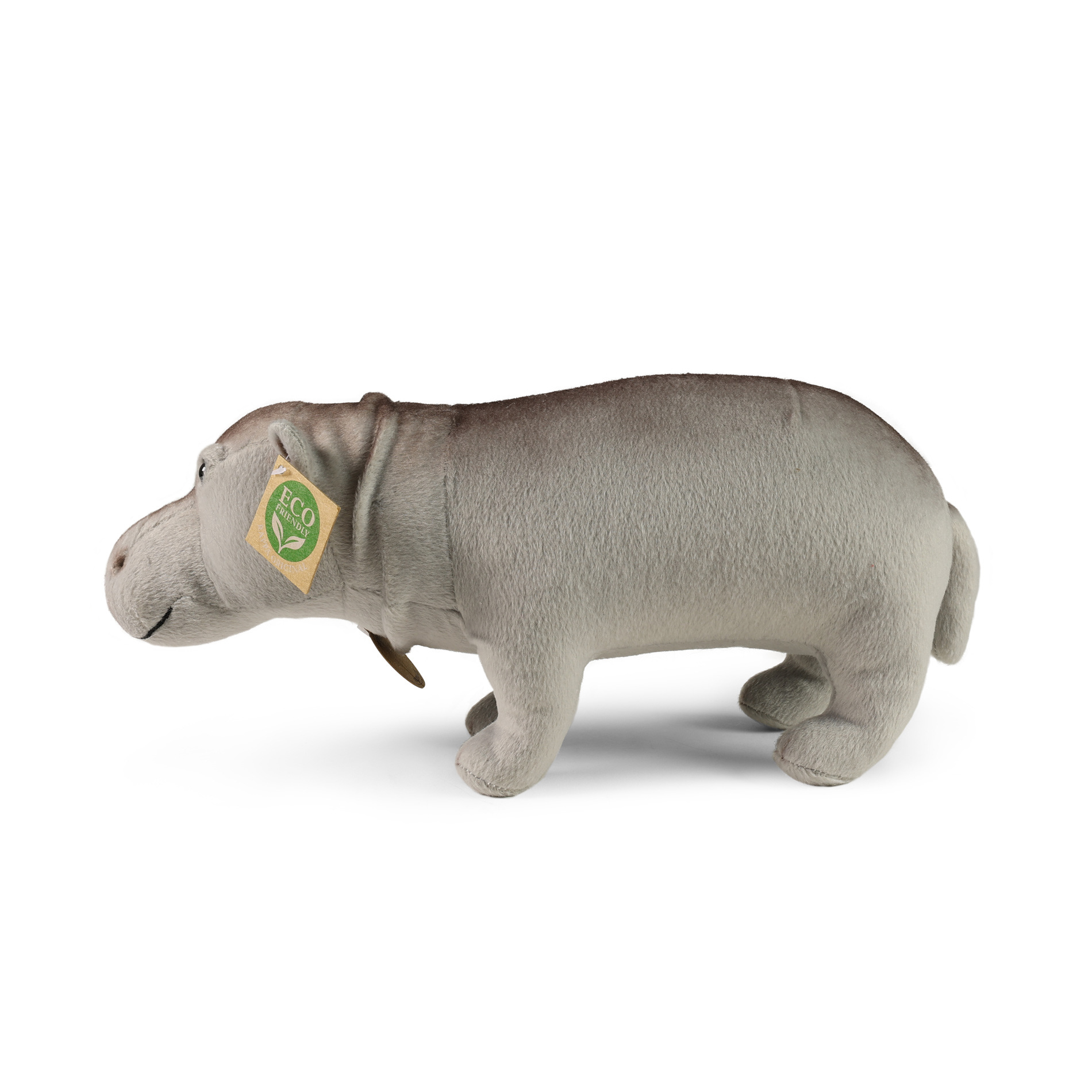 Plyšový hroch měří 32 cm a díky těm nejkvalitnějším materiálům se řadí do Exkluzivní kolekce plyšových hraček značky Rappa. Díky ručnímu zpracování každého kusu navíc vypadá jako živý. Proč označení ECO-FRIENDLY? Rappa si je vědoma všech dopadů na životního prostředí, zaměřuje se na udržitelnost a omezení používání plastů na minimum. Proto je výplň hraček vyrobena z recyklovaných materiálů, zejména PET lahví. Ta je však zcela nezávadná a vhodná i pro děti od narození. FUN FACT: Věděli jste, že hroši jsou opravdu hlasití tvorové a jejich bručení je slyšet až na vzdálenost 1,5 kilometru?