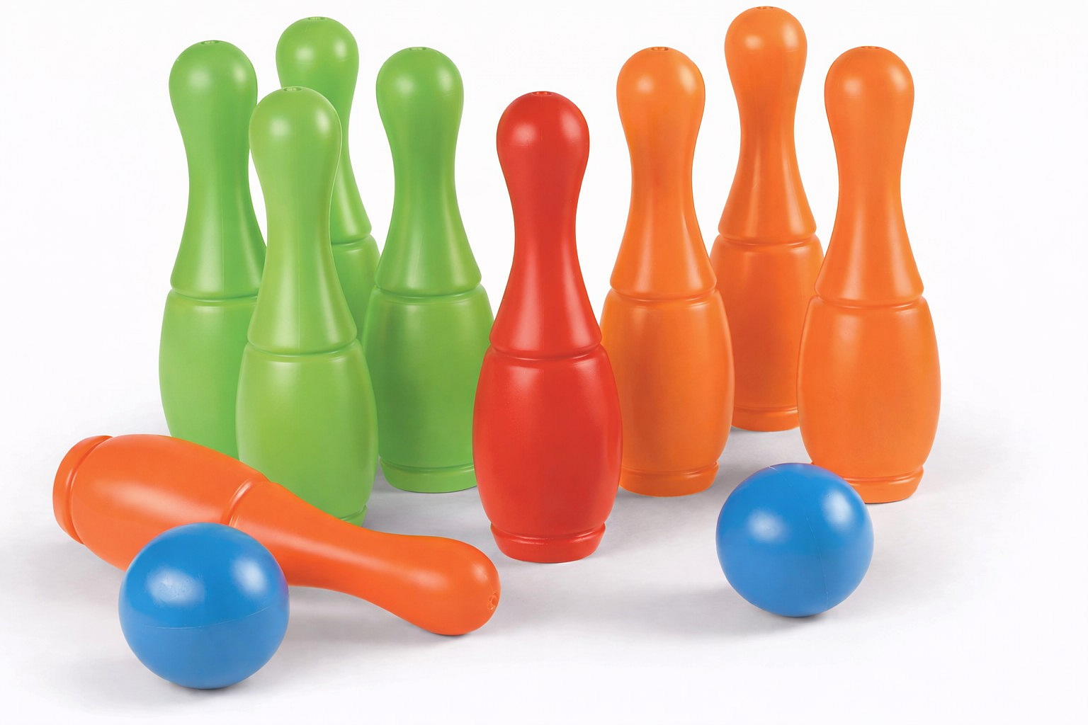 Bowlingový set s 9 barevnými plnitelnými kuželkami a 2 plnitelnými koulemi. Vyrobeno z kvalitních plastů v Itálii. Pro správnou stabilitu a váhu je nutné kuželky i koule naplnit vodou nebo pískem. K uzavření otvorů slouží malé špuntíky, které jsou součástí černého plastového držáčku kuželek a které je třeba odlomit. Výška kuželek je 27 cm, O 8,3 cm. Rozměry balení: 25 x 25 x 27 cm (d x š x v). Váha: 0,707 kg. Doporučený věk od 36 měsíců.