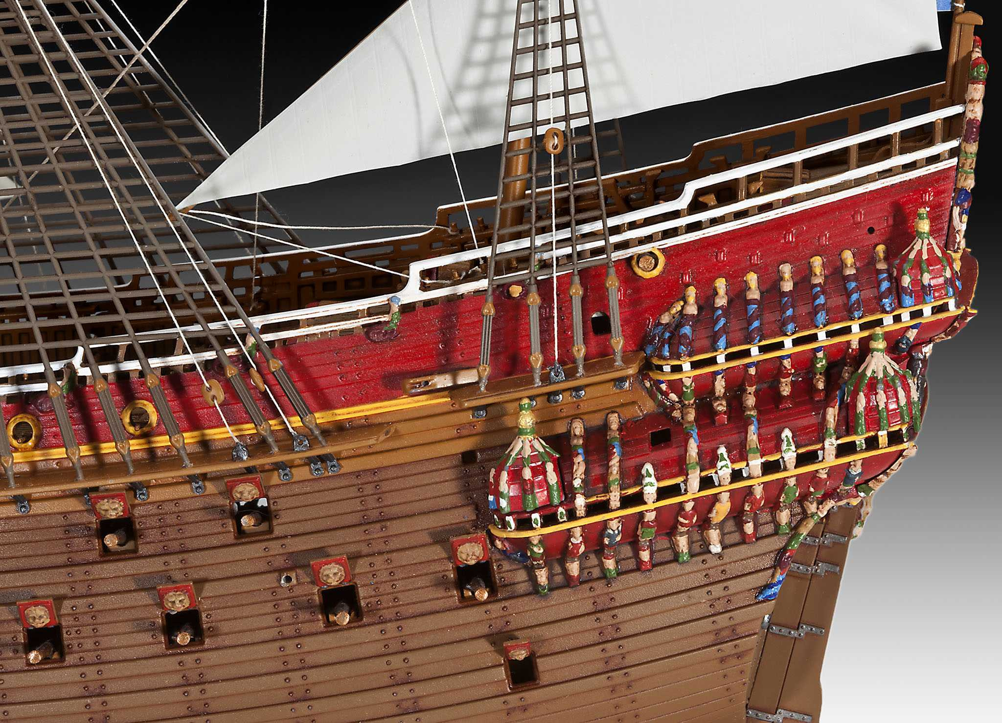 - Szczegółowy kadłub z wieloma elementami konstrukcyjnymi i dekoracyjnymi - Pokłady z konstrukcją drewnianą i drzwiami na dolny pokład - Rufa statku jest bogato zdobiona i posiada wiele rzeźb - Szczegółowe maszty - Szczegółowy łuk - Wiernie wykonane armaty - Oddzielne luki - 2 łodzie ratunkowe - Załączniki przygotowane wcześniej - Żagle wzorzyste - Opakowanie zawiera dwa rodzaje nici linowych - Stojak do ekspozycji modelu - Kolorowe flagi