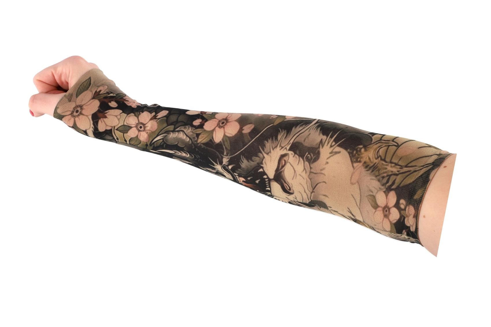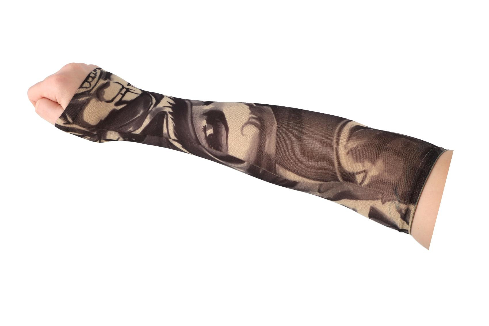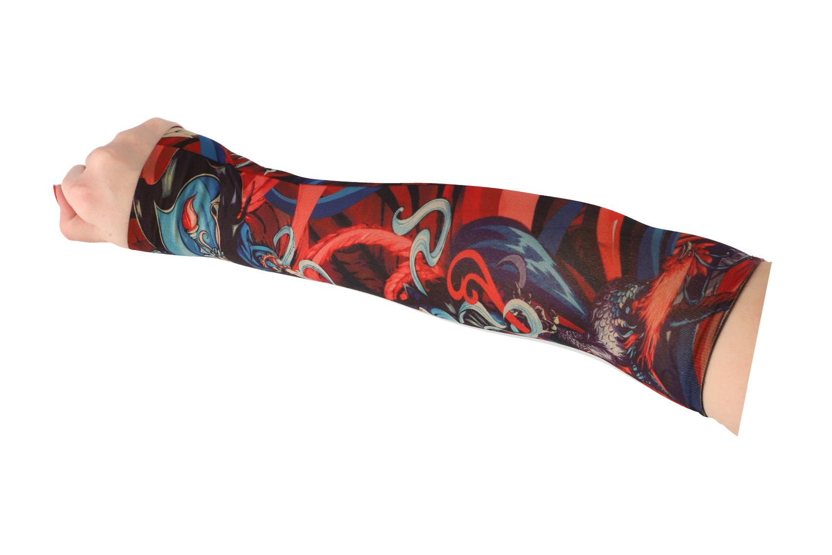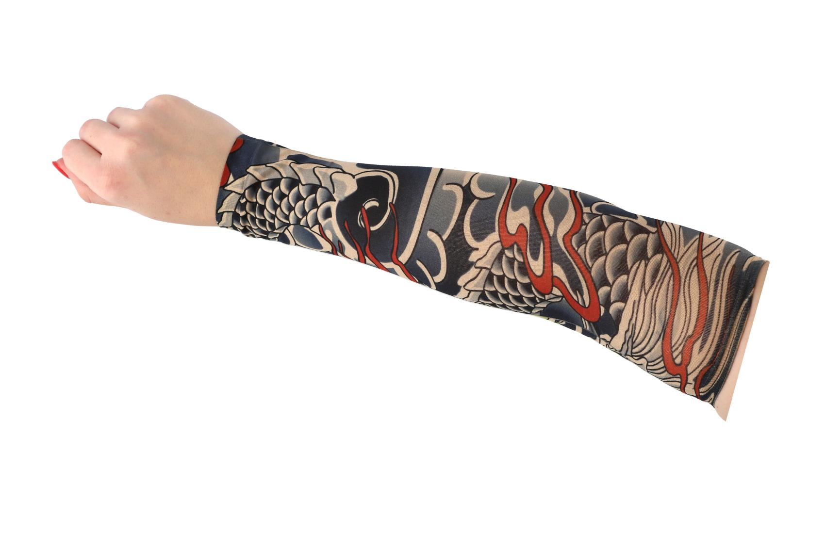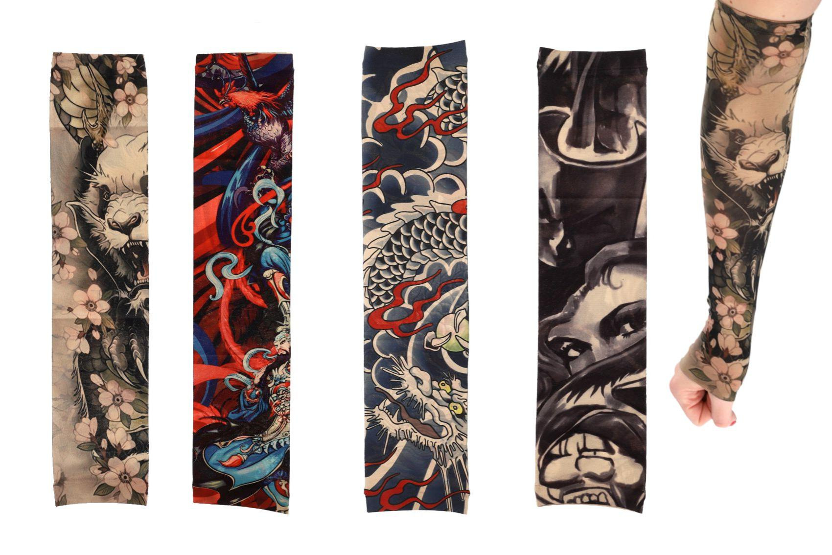 Tetovací rukáv z elastické látky je skvělým doplňkem pro každého, kdo chce vyzkoušet vzhled tetování bez trvalého závazku. Realistické motivy působí jako skutečné tetování a rukáv pohodlně zakryje celé předloktí. Díky pružnému a prodyšnému materiálu se rukáv snadno nasazuje a dobře se přizpůsobí tvaru ruky. V balení se nachází 4 různé designy, které umožňují střídat styl podle nálady nebo příležitosti. Ideální na párty, karneval, festivaly nebo jen tak pro zábavu.