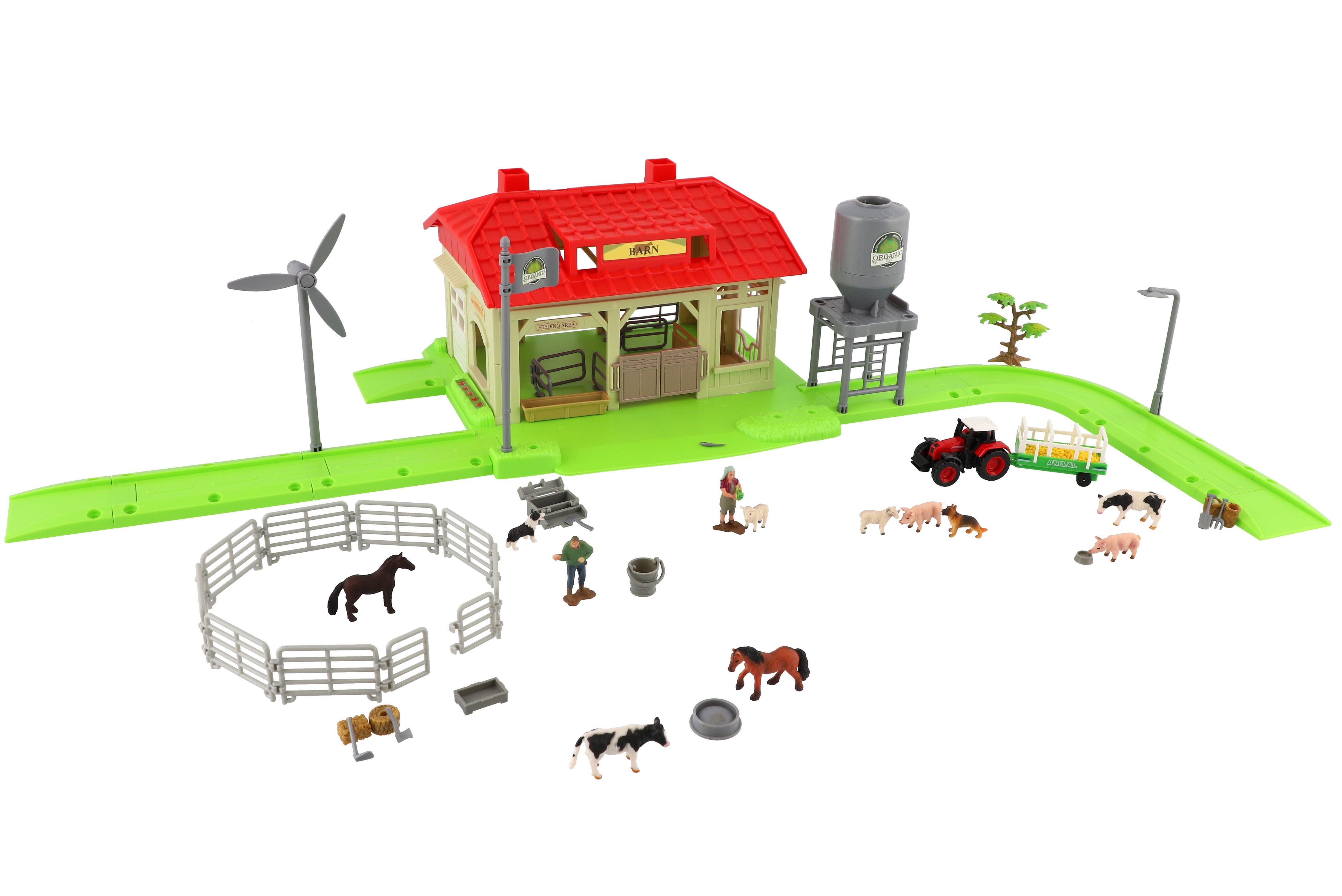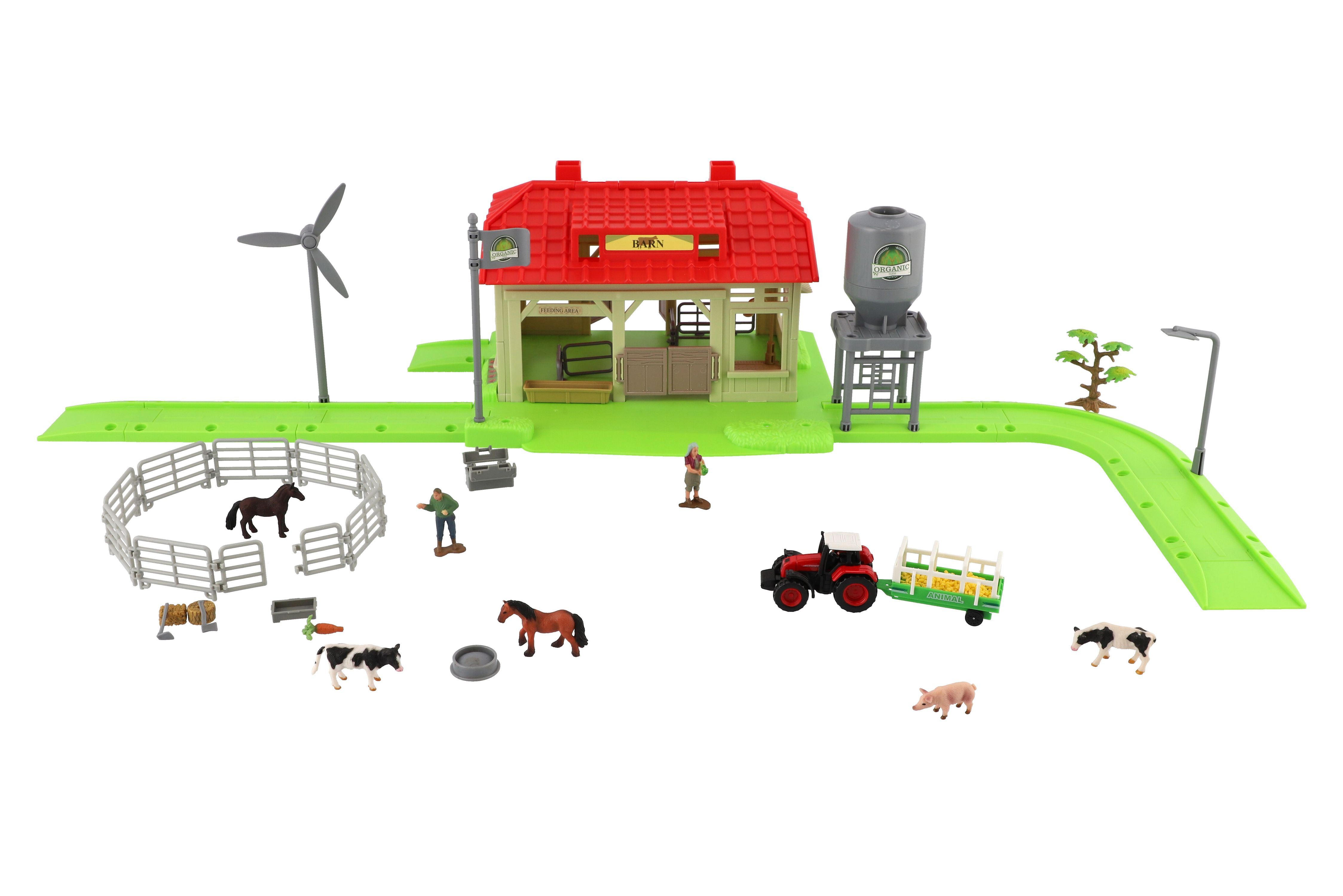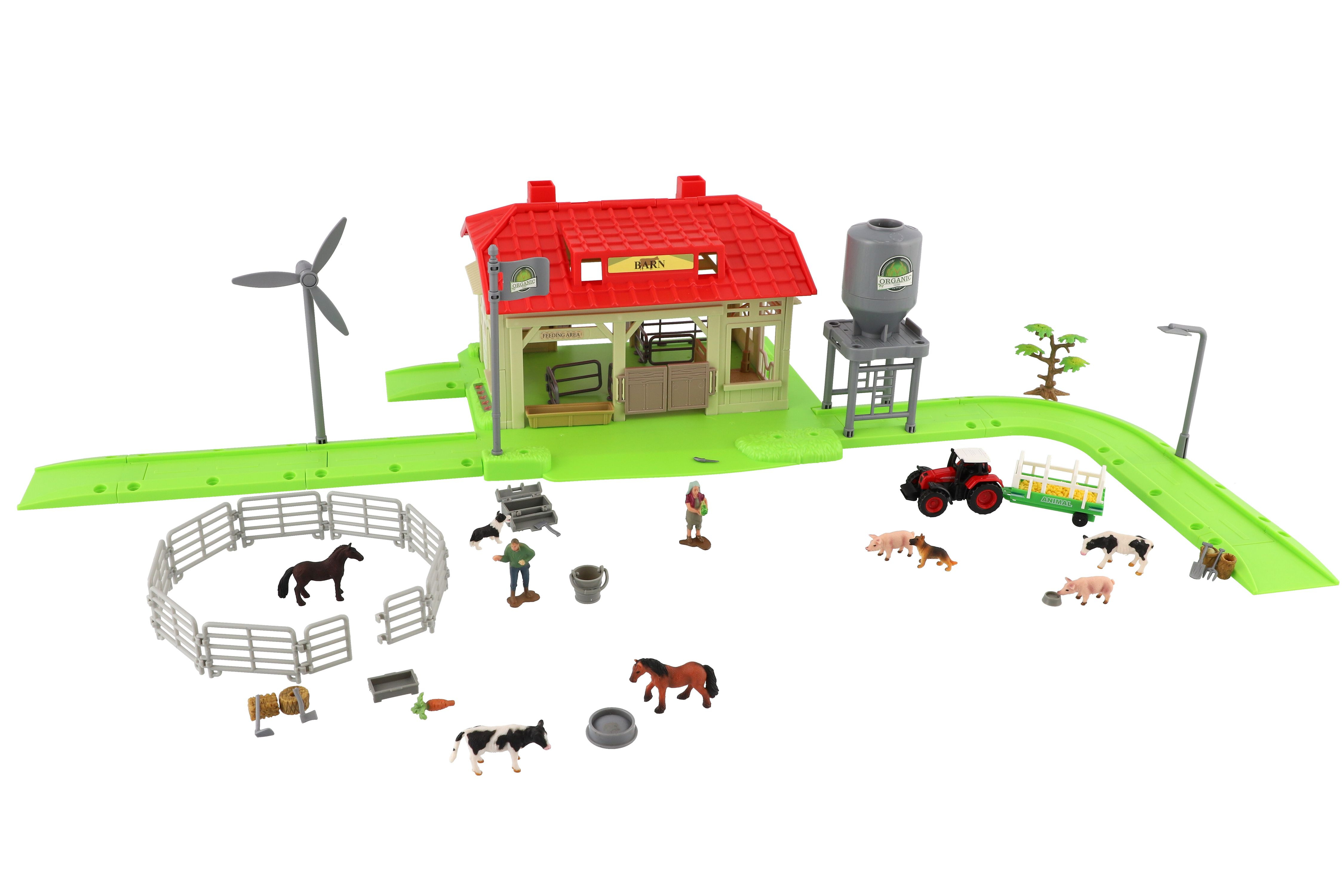 Teddies Zestaw farma Home ze zwierzętami i plastikowym traktorem z akcesoriami w pudełku o wymiarach 48x31x9cm