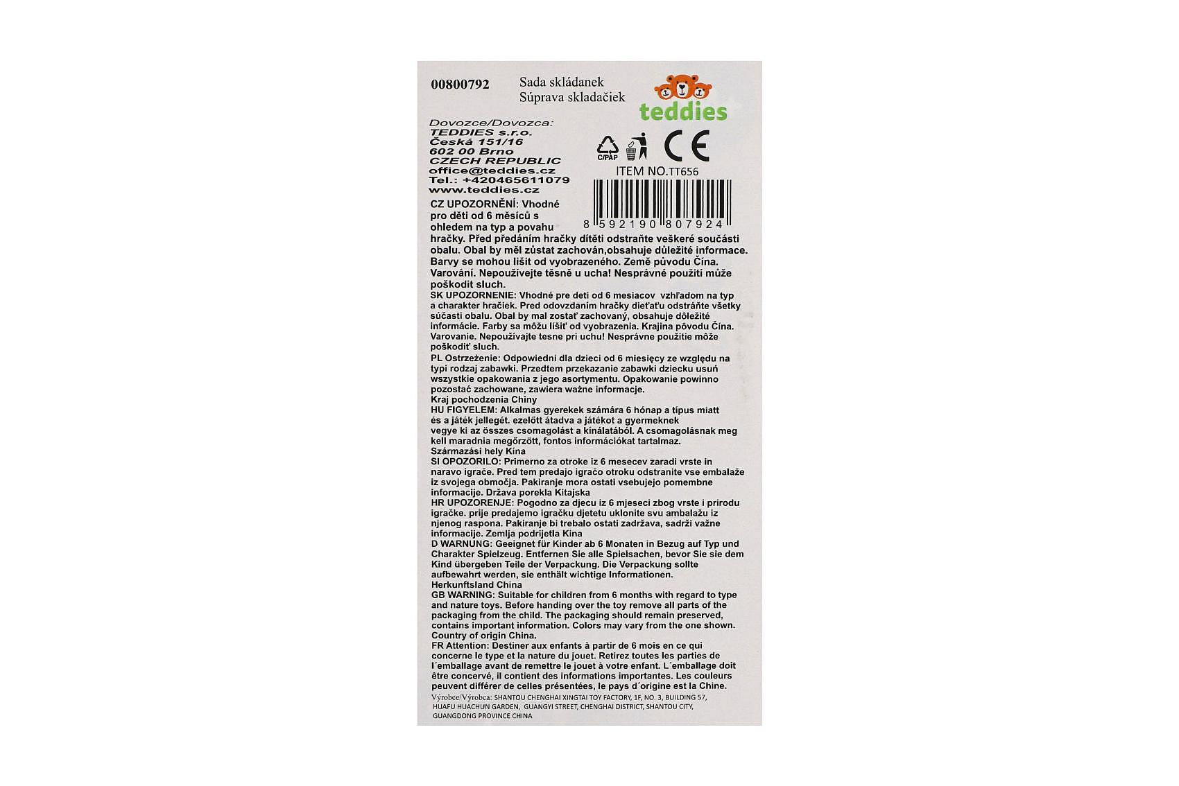Opis Teddies Sada skládanek s míčky 19ks v krabici 6m+