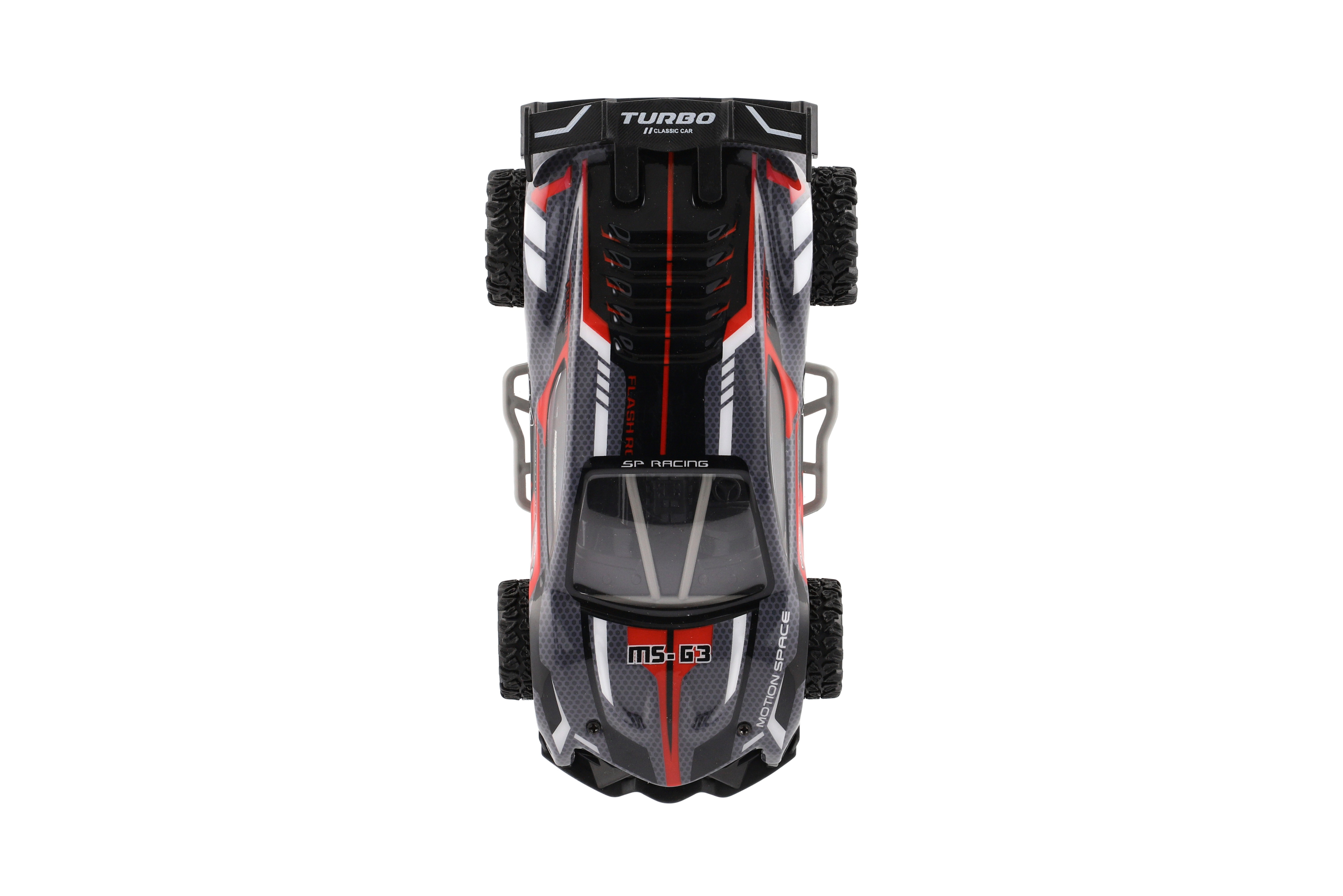 Opis Teddies Samochód Teddies Car RC sportowy plastikowy 2.4GHz 20cm zasilany bateriami szaro-czerwony w pudełku 24x12x14cm