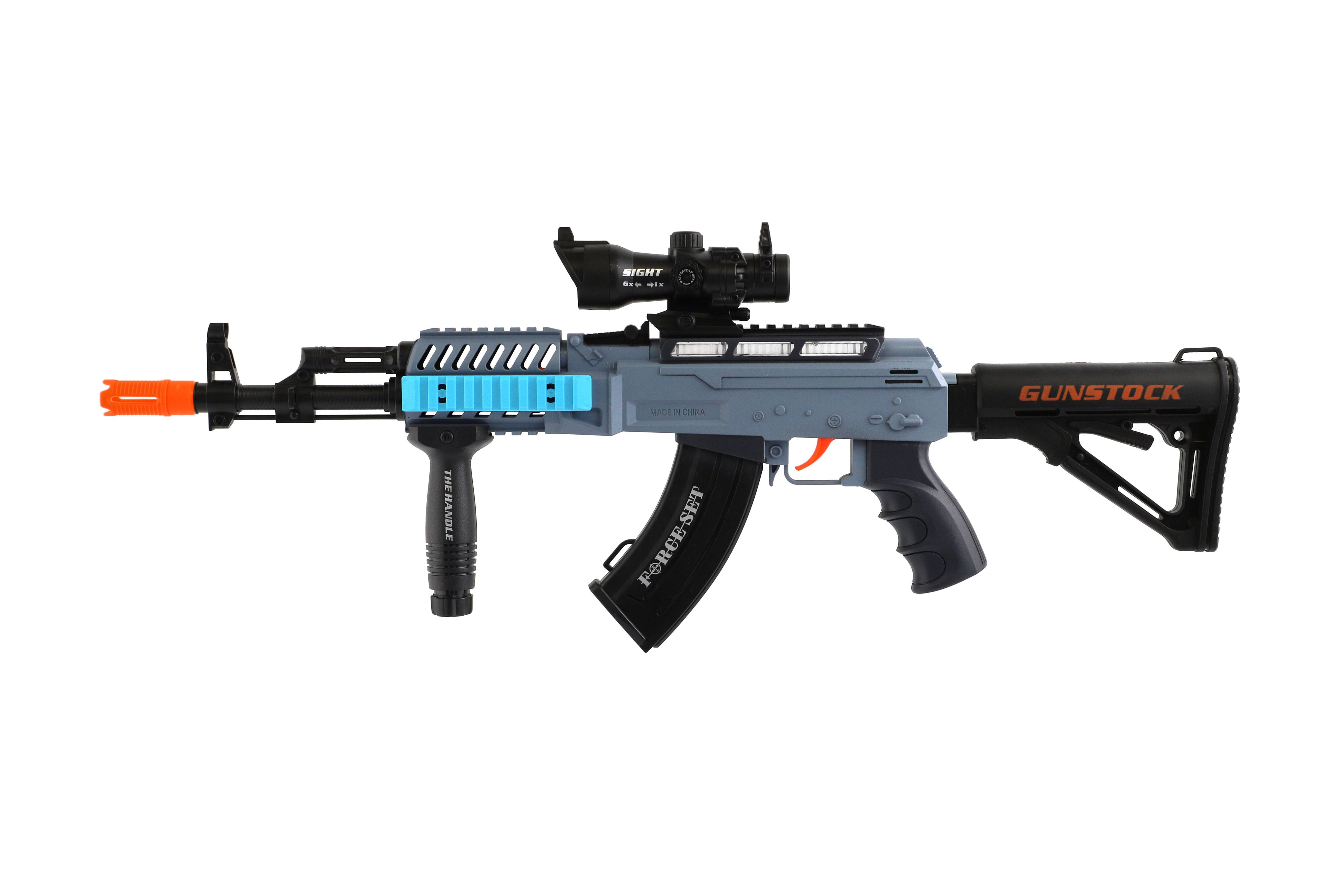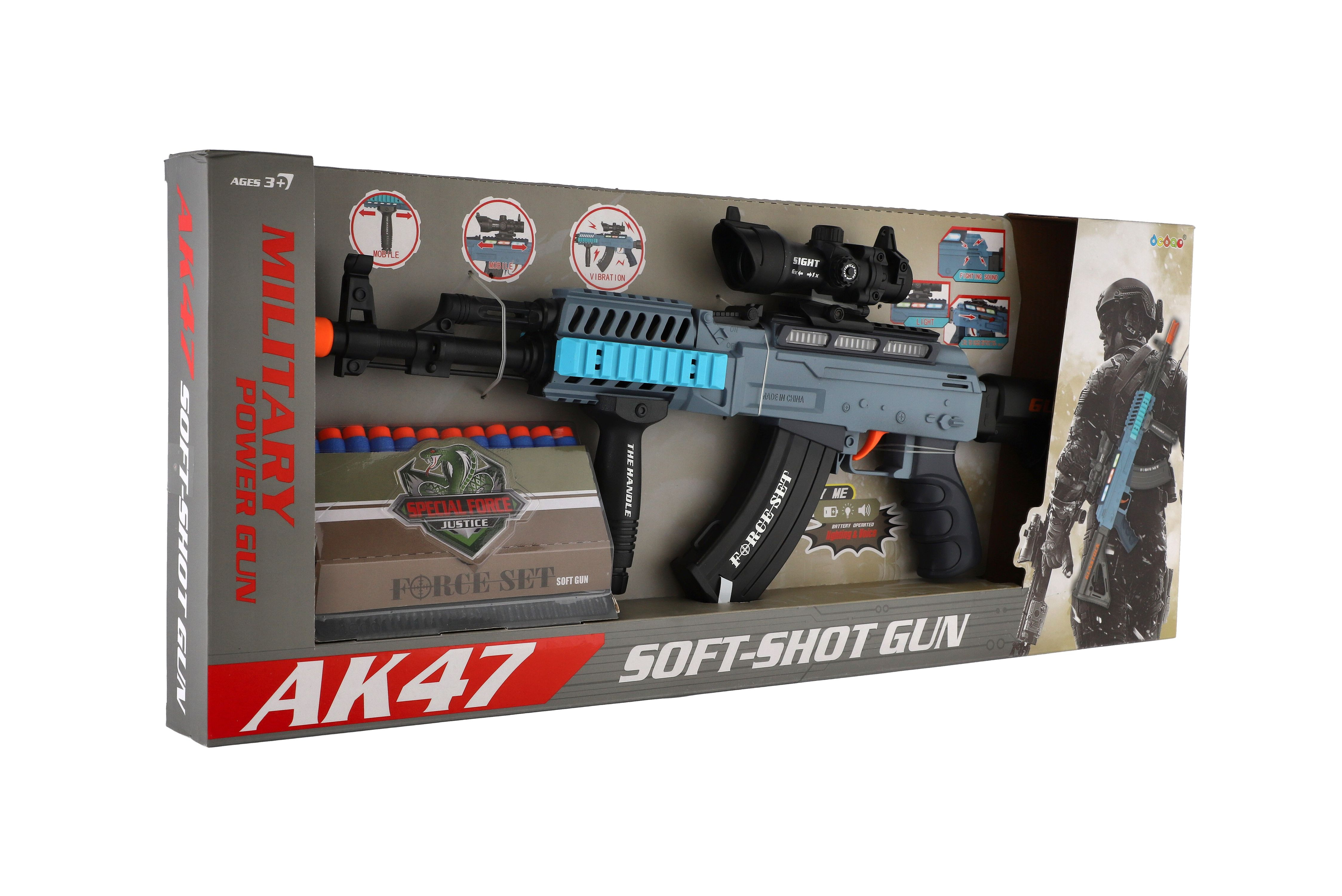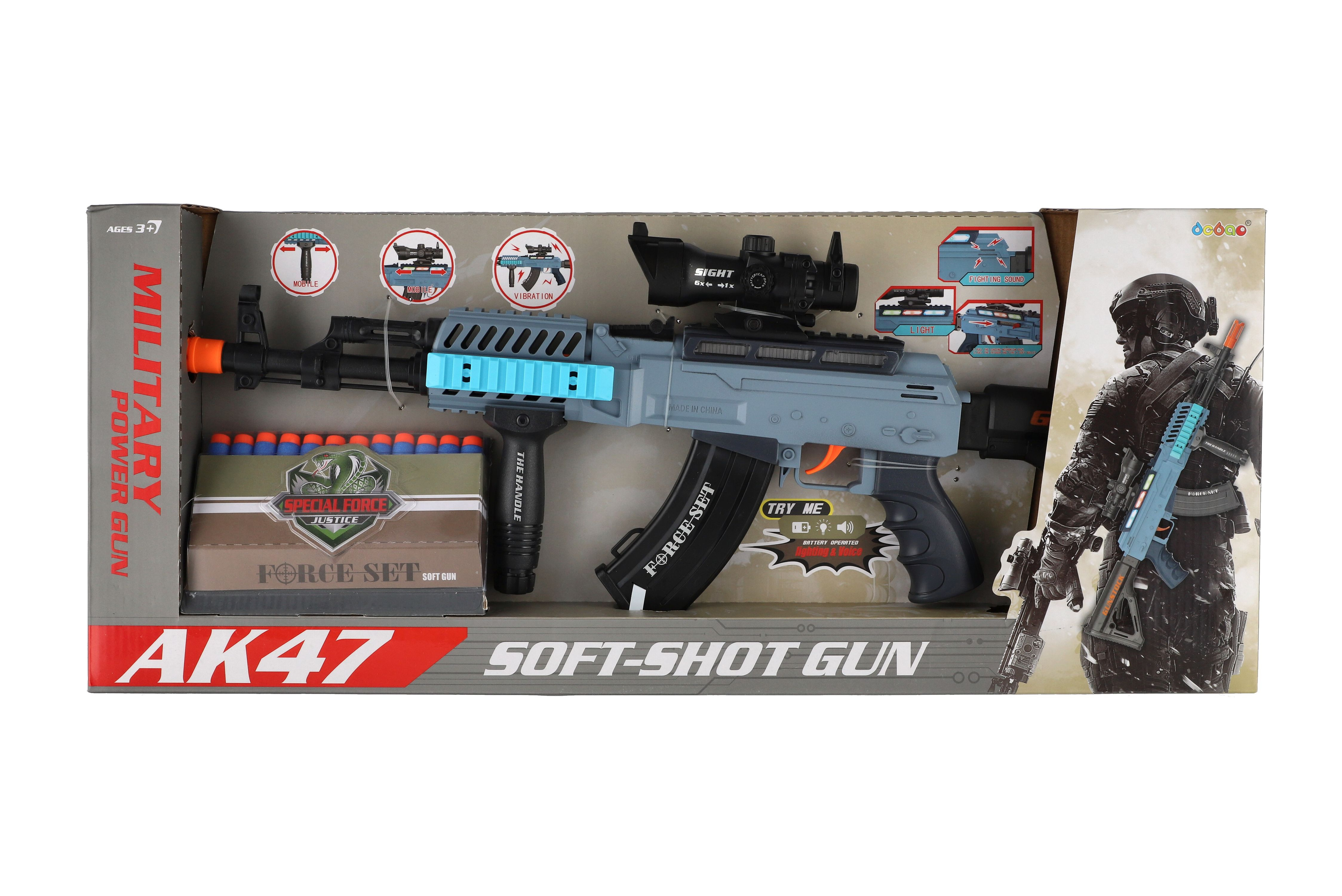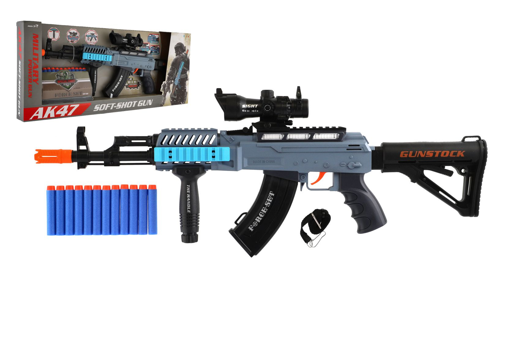 Teddies Pistolet maszynowy na naboje piankowe + naboje 12 szt. plastikowy 60cm na baterie ze światłem i dźwiękiem w pudełku 65x27x6cm