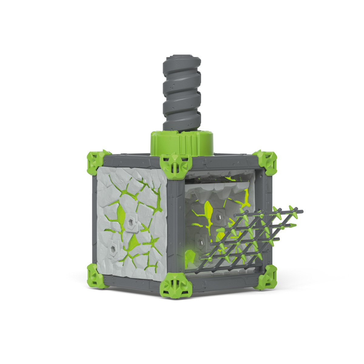 Mohutný a nehybný jako skála, impozantní kamenný slasher čeká na své protivníky. Stojí velmi klidně před arénou BattleCave, ale jeho bystrým zeleným očím nic neunikne. Pokud se pokusíš ukrást krystal světa z arény BattleCave, raději si dávej pozor. Kamenný slasher se bleskurychle rozmáchne mocnou krystalovou pěstí a rozmetá útočníky na kousky. Pokud se někomu podaří projít kolem tohoto kolosu nepozorovaně, zdaleka ještě nemá vyhráno. Vetřelci musí překonat nebezpečné padací dveře. Jakmile se však dostanou do arény, past sklapla a oni jsou chyceni. A jako by to nestačilo, může kamenný slasher taky otáčet obrovským šroubem! Strop se pořád víc přibližuje. Rozdrtí útočníky? Arény ELDRADOR® CREATURES BattleCave promění každý dětskou hernu v akční zónu. Kdo chce tuhle výzvu přijmout? Všechny arény BattleCave lze navzájem kombinovat. Na útočníky čekají záludné pasti. V aréně BattleCave se můžou sejít na souboj. Krystal světa hledá spousta pochybných postav. Nebezpečný kamenný smasher však por