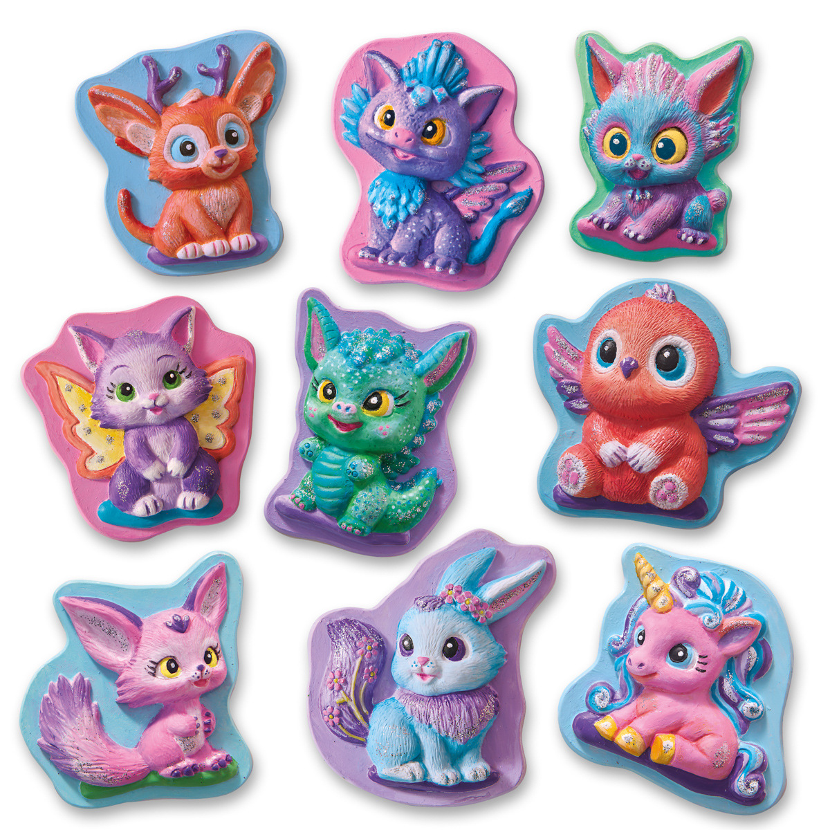 Odkryj radość tworzenia z zestawem do odlewania i malowania i stwórz gipsowe figurki uroczych postaci z bajki. Stwórz 11 uroczych postaci, w tym smoki, jednorożce, króliczki i wiele innych. W zestawie znajduje się gips, drewniana szpachelka i szczegółowa forma odlewnicza ułatwiająca tworzenie. Udekoruj 6 żywymi kolorami i srebrnym brokatowym klejem, aby uzyskać magiczne wzory. Idealne dla dzieci i dorosłych, którzy kochają kreatywne malowanie i radość tworzenia. Kompletny zestaw zawiera 300 g gipsu, drewnianą szpatułkę, pędzel, formę odlewniczą, 6 kolorów, klej z brokatem w kolorze srebrnym oraz instrukcję. Wymiary opakowania: 20 x 30 x 4 cm. Wiek: 5+