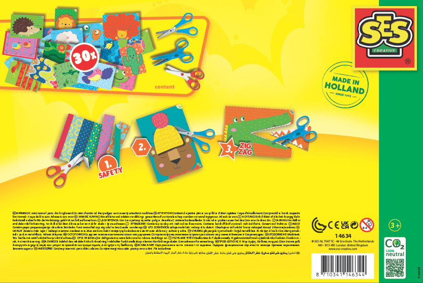 Zacznij od bezpiecznych dla dzieci nożyczek, które nie przetną palców, włosów ani ubrań - tylko papier! Czy opanowałeś już technikę? Czy jesteś mistrzem nożyczek? Spróbuj użyć nożyczek zygzakowatych, aby ukończyć karty! Za pomocą nożyczek zygzakowatych możesz wyciąć zęby krokodyla lub kolce jeża jednym pociągnięciem. Zawiera.