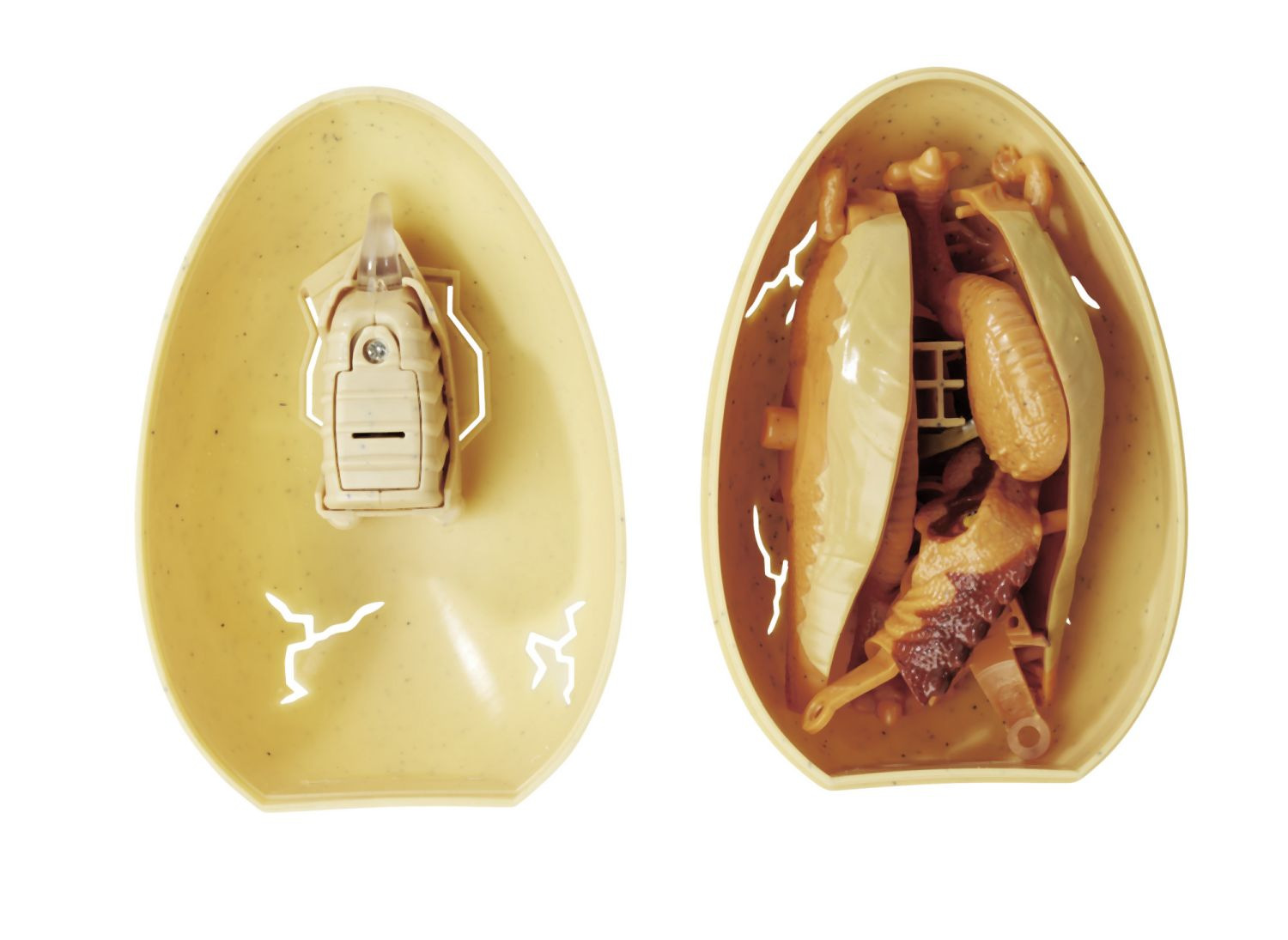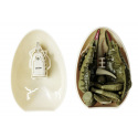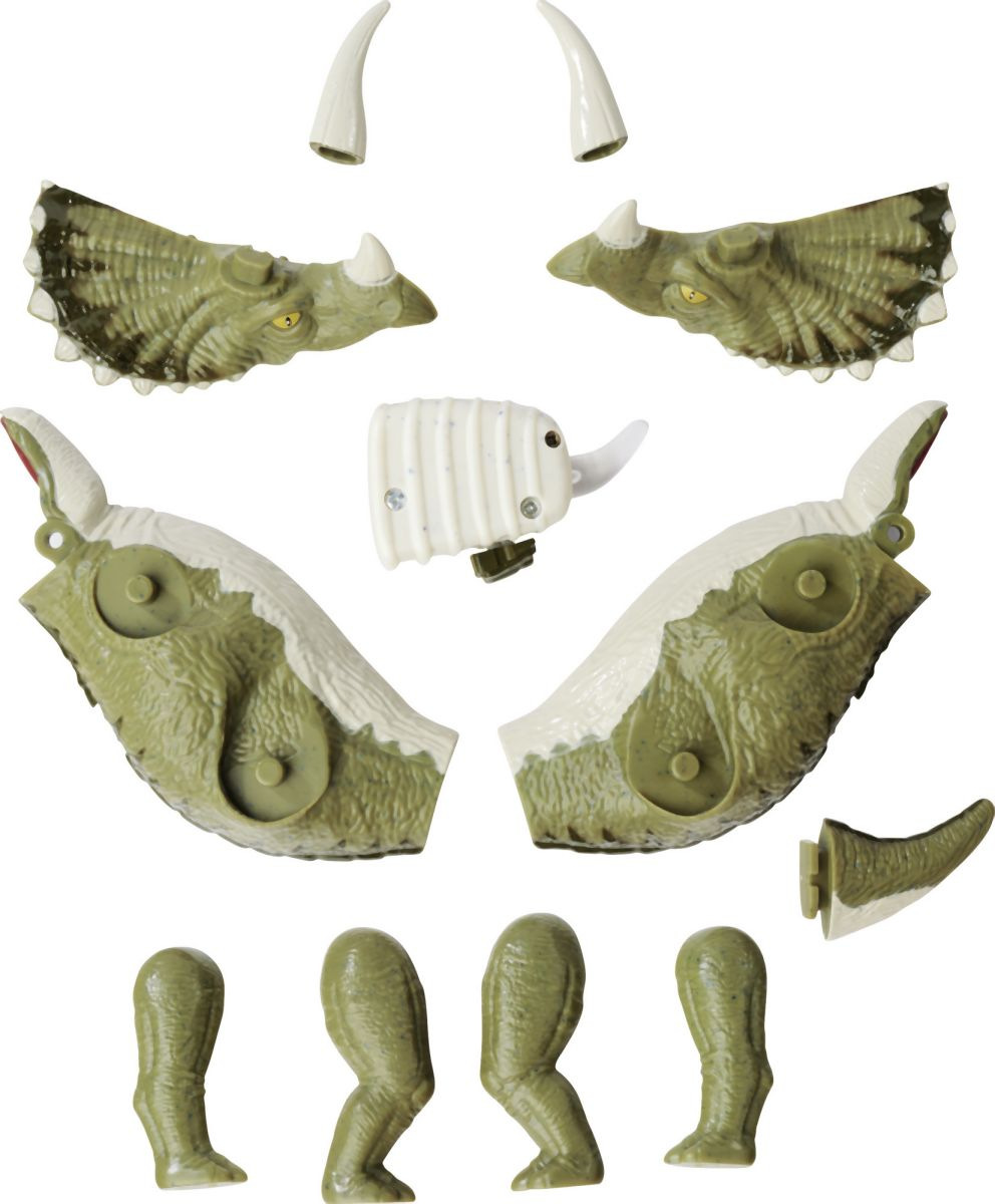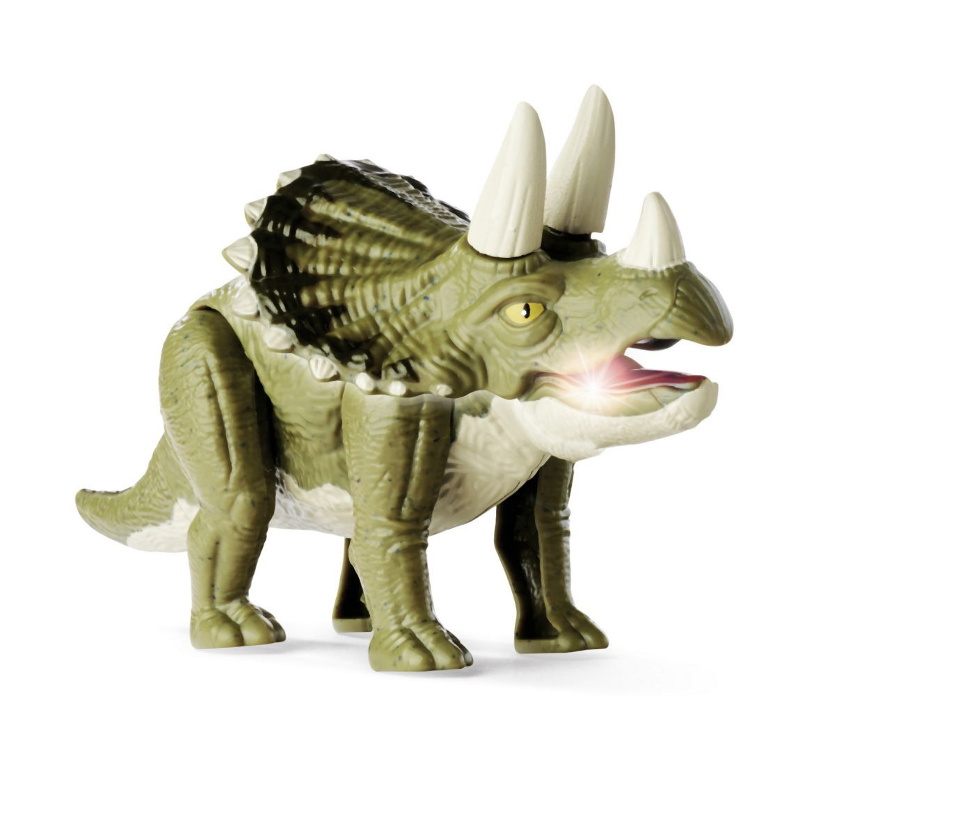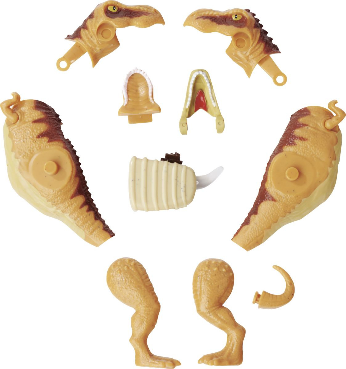 V každém vejci je schována figurka dinosaura o velikosti 14 cm, skládačka kostry dinosaura a návod. Dinosaurus svítí a vydává zvuky, 3 druhy - T-Rex, Velociraptor, Triceratops.