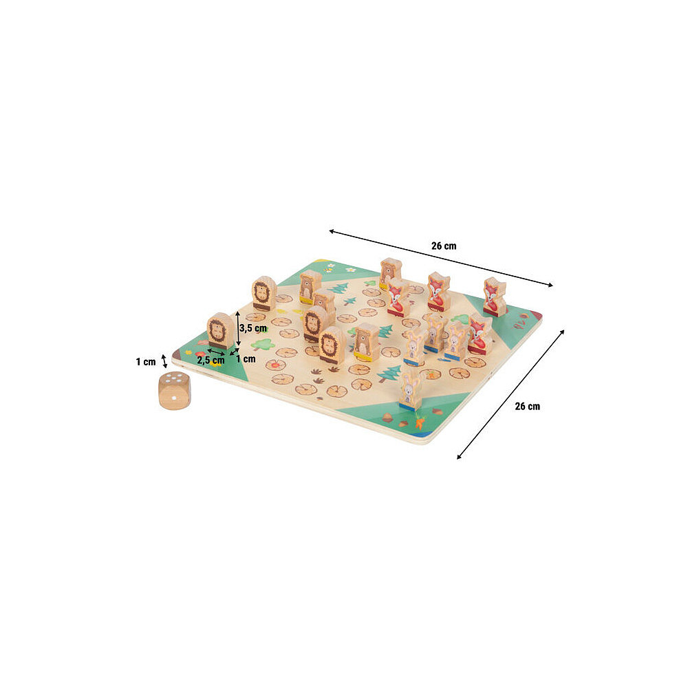 Hoďte kostkou, hýbejte figurkami a užijte si spoustu zábavy se zvířaty! Tato propracovaná hra Člověče, nezlob se přináší oblíbenou klasiku v okouzlující zvířecí podobě. Medvěd, liška, ježek nebo králík, tyto láskyplně navržené dřevěné figurky zvou děti ke hře, při které se hravou formou učí počítat a zároveň rozvíjejí jemnou motoriku. V této verzi hry mohou proti sobě soutěžit až čtyři hráči a posouvat své figurky po kvalitně potištěné herní desce s motivy divokých zvířat. Součástí hry je extra velká dřevěná kostka, ideální pro malé dětské ručičky, která podporuje rané počítací dovednosti. Robustní dřevěné figurky se snadno uchopují, jsou odolné a navržené s ohledem na potřeby dětí. Díky modernímu designu s viditelnou kresbou dřeva a vysoké kvalitě zpracování se tato hra stane oblíbenou součástí v každém dětském pokoji a nabídne dlouhé hodiny společné zábavy.
