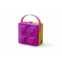 Svačinový box ve tvaru velké LEGO kostky s praktickou silikonovou rukojetí. Rozměry: 165 x 173 x 116