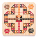 Zestaw gier planszowych w jednym dużym zestawie. Drewniane pudełko zawierające 2 dwustronnie zadrukowane plansze do poszczególnych gier planszowych (szachy, warcaby, backgammon, człowieku, nie gniewaj się, chińskie warcaby, młynek). Dla każdej gry planszowej znajdziesz odpowiednie elementy i kości. Nawet pokrywa zestawu do gry jest używana jako dodatkowa powierzchnia do gry. Zestaw zawiera również domino. Wiek: 5+