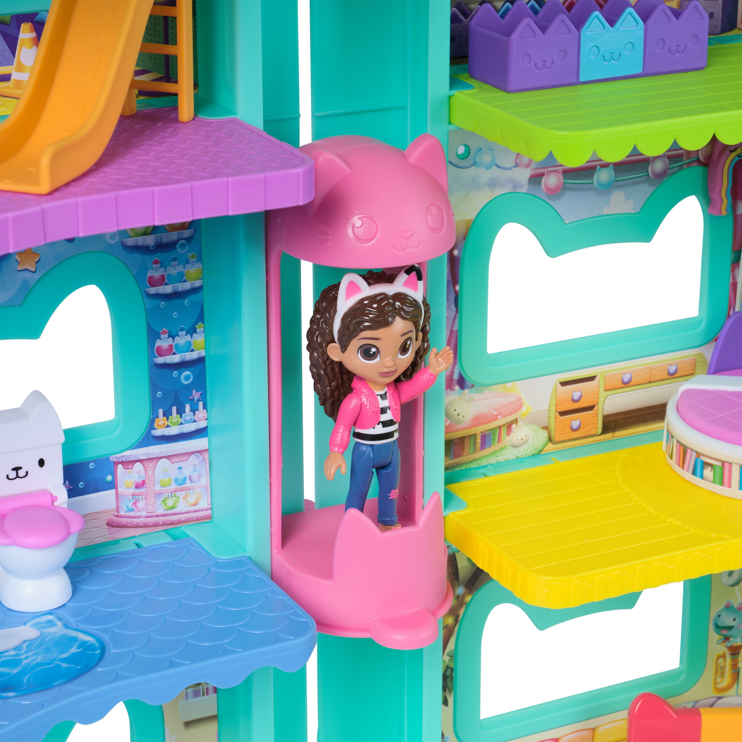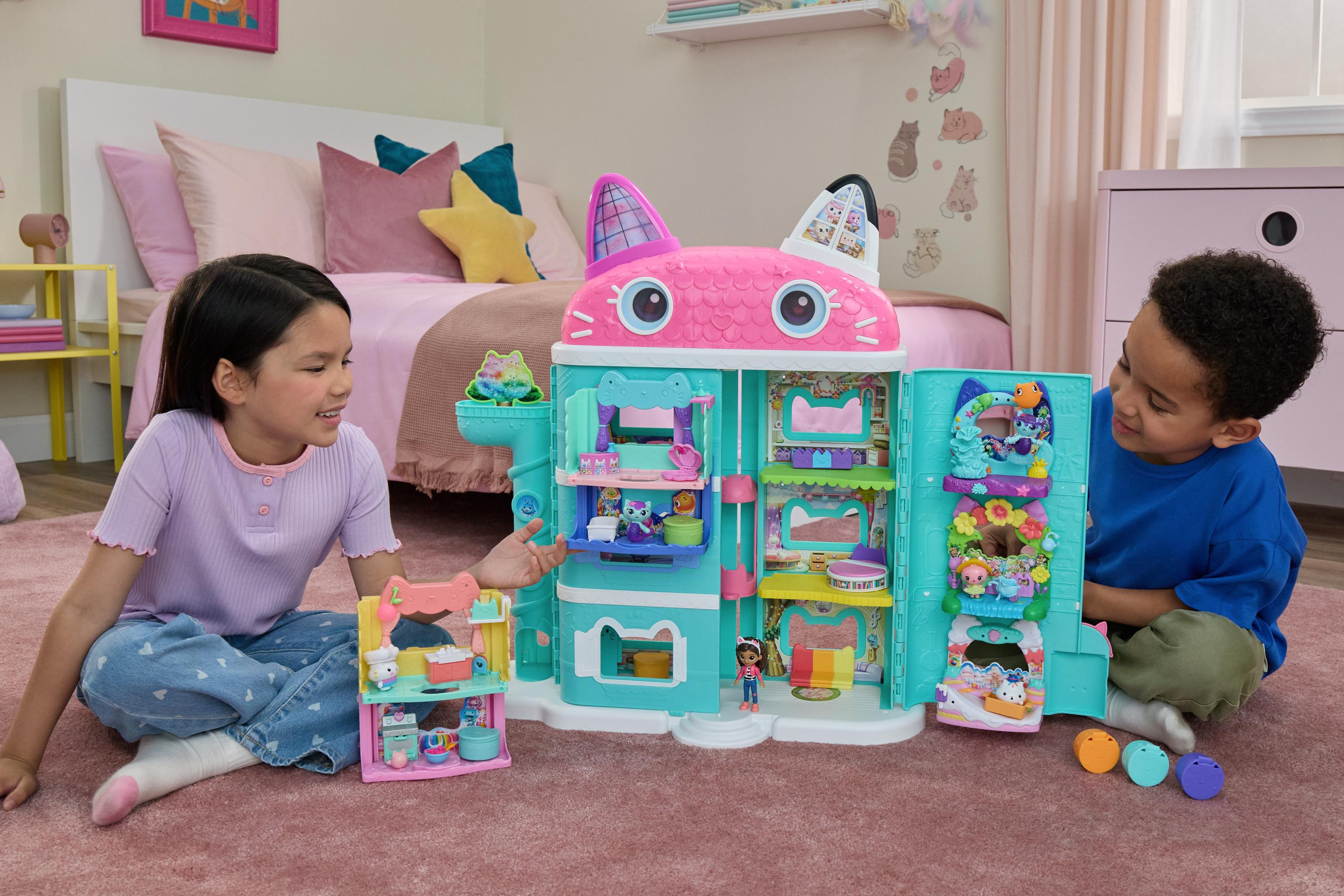 Velký dům Gabby's Dolhouse ve filmovém provedení. Oči domu jsou lentikulární a pohybují se. Dům lze doplnit o další menší hrací sady a učinit jej tak útulnějším.