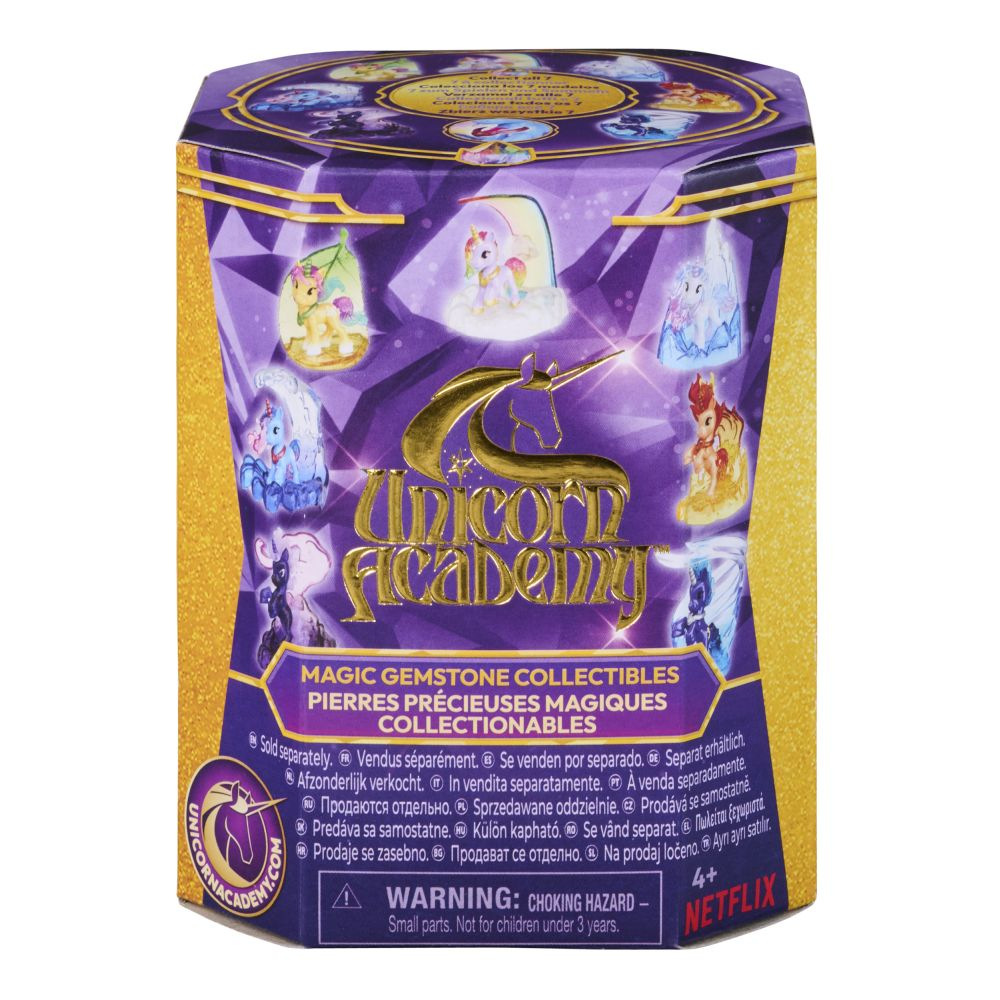 Odhalte překvapení v podobě sběratelské figurky jednorožce. Inspirované animovaným seriálem na Netflixu a oblíbenou knižní řadou, kde vládne přátelství, tyto kouzelné překvapující hračky přinášejí jednorožce k životu díky roztomilým detailům a hravým pózám. V krabičce objevíte jednorožce Magic Gemstone, který má průsvitnou hřívu i ocas a také jedinečný podstavec odpovídající jeho schopnostem, rovněž s průsvitnými detaily. Kterého jednorožce Magic Gemstone najdete tentokrát? Posbírejte jednorožce jako Wildstar, Leaf, River, Cinder, Glacier, Storm nebo také Grim, který svítí ve tmě. (Hračky se prodávají samostatně.) Hrajte si se svou novou figurkou a po skončení hraní ji vystavte na podstavci. Chcete-li objevit všechny způsoby, jak si užít svět Unicorn Academy se svými oblíbenými postavami, prohlédněte si módní panenky, jednorožce a sady malých panenek a jednorožců (prodávají se samostatně) a rozšiřte svůj kouzelný svět! Hračky s tematikou Unicorn Academy jsou perfektním dárkem pro dívky k narozeninám nebo jakékoli jiné příležitosti – jsou určené pro děti, které mají rády jednorožce a koně, panenky a doplňky, domečky pro panenky, sběratelské předměty, plyšové hračky a další. Přidejte všechny sběratelské jednorožce Magic Gemstone do své kolekce Unicorn Academy.