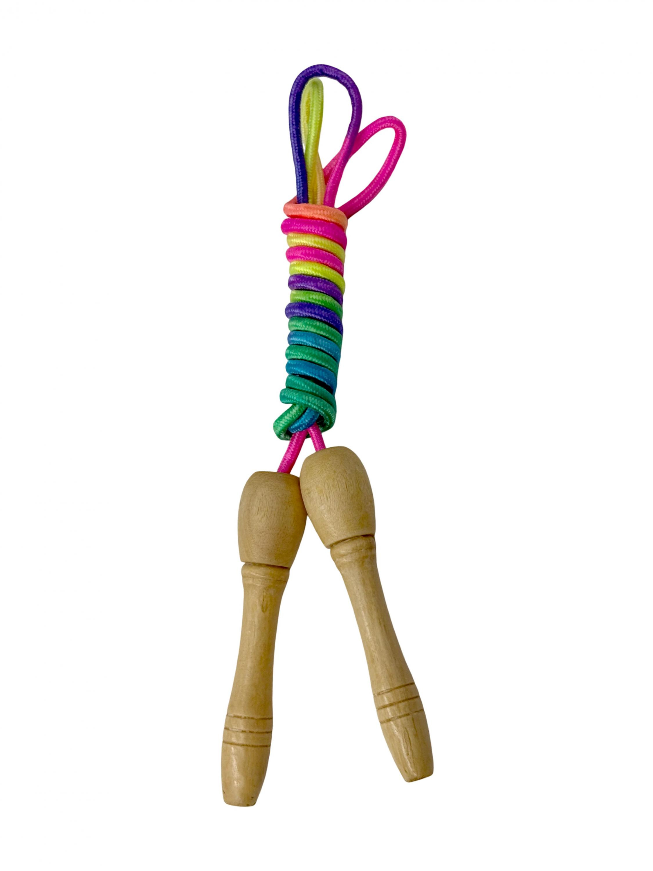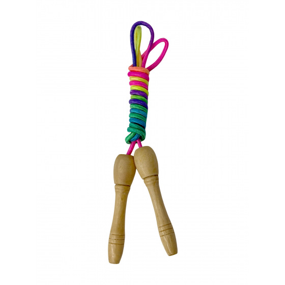 Skakanka z drewnianą rączką.