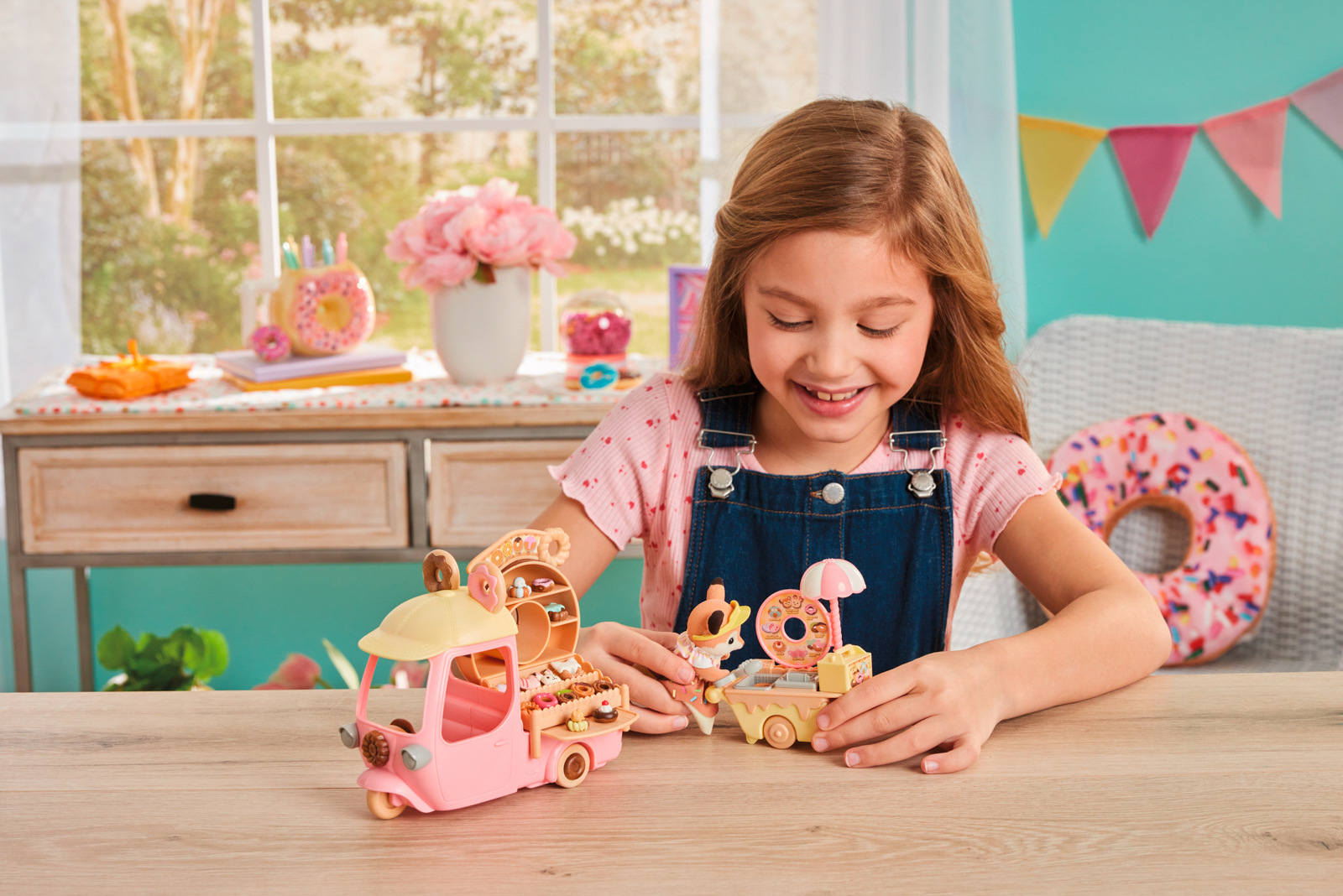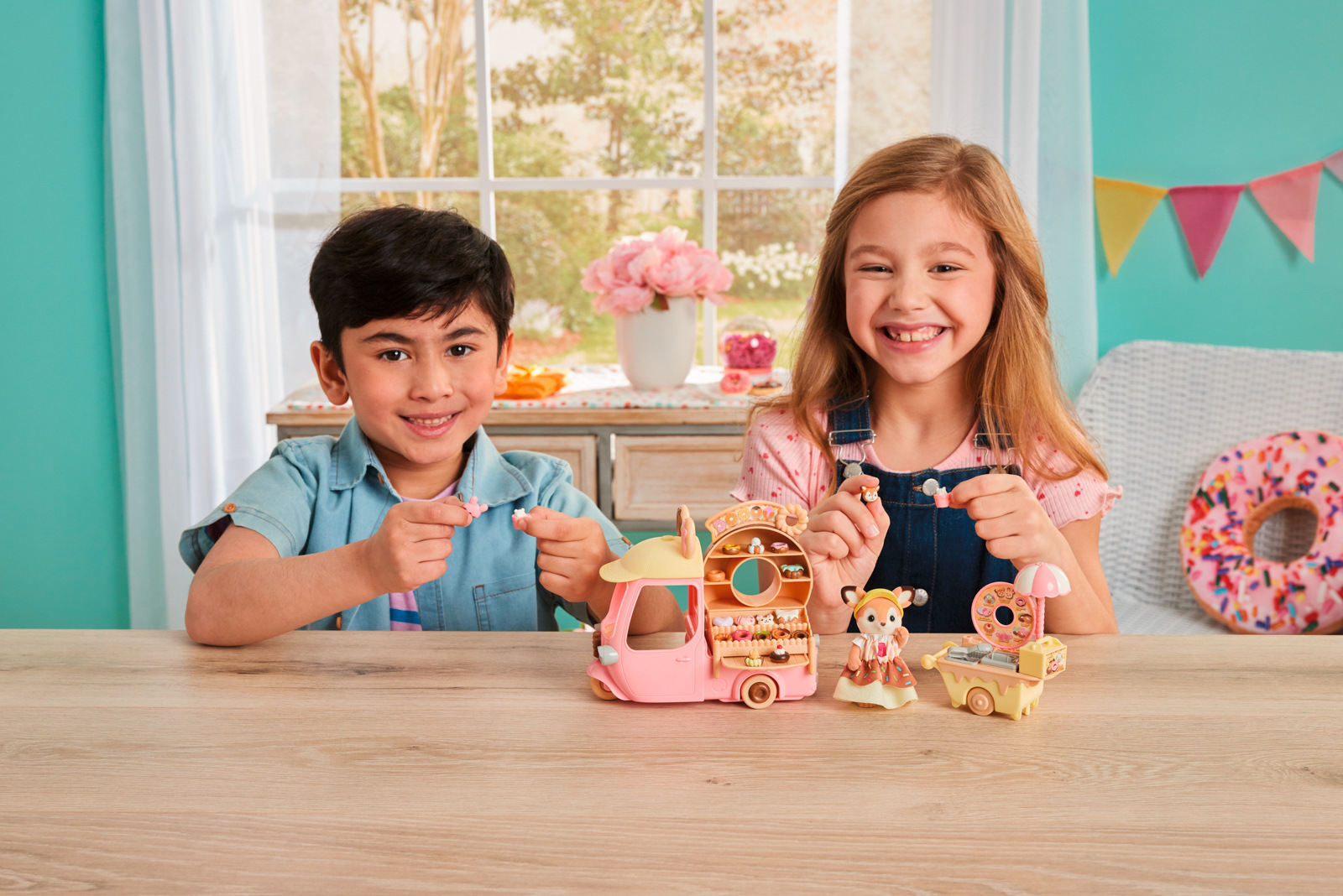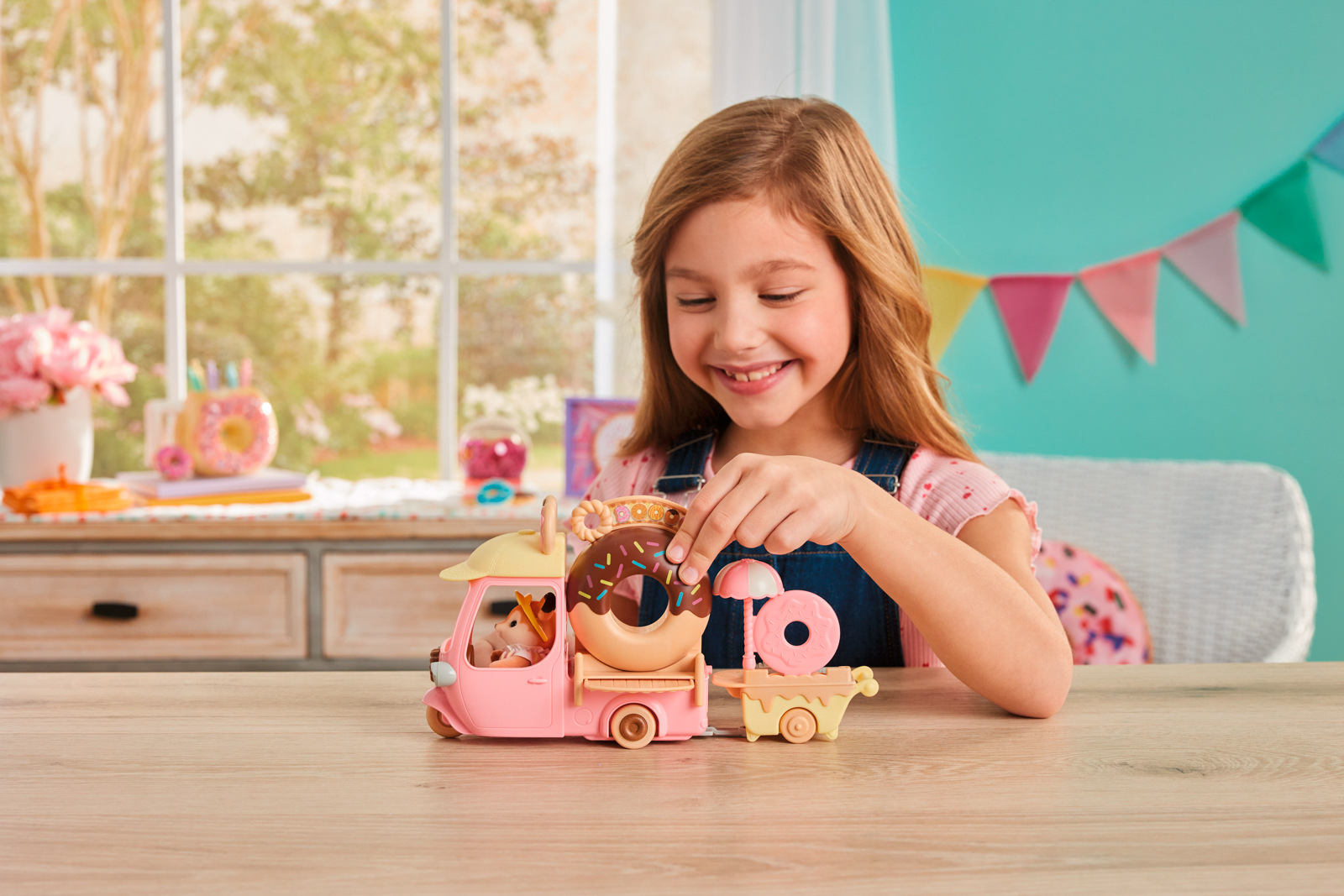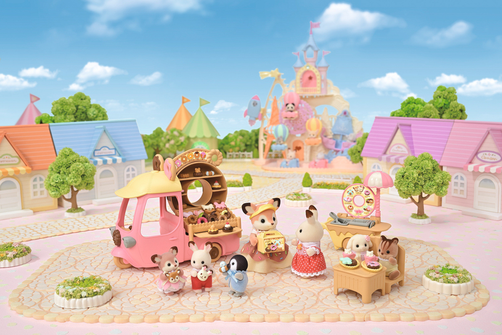 Zveme vás na lahodné donuty. Koblihový vozík s velkým kulatým donutem na střeše se objevil v Sylvanian Families. Když máma z rodiny Jelínků Primrose, přijíždí se svým koblihovým vozíkem, všichni milovníci sladkého pečiva se postaví do dlouhé fronty. Stačí pár kroků a vozík se změní na malý obchůdek s koblihami. Všechny donuty jsou připravovány na místě a zdobeny podle objednávky každého hosta. Sada obsahuje spoustu koblih různých tvarů a více než 30 doplňků. Jelení máma Primrose je oblečena v roztomilém kostýmu připomínajícím sladkou koblihu s barevným posypem. Stánek s donuty lze přeměnit na malý autobus pro děti z říše Sylvanian Families. Sada obsahuje také vozík s prostorem na smažení a zdobení koblihových dobrot. Hračky Sylvanian Families rozvíjejí představivost a povzbuzují děti k hraní rolí. Hra s figurkami rozvíjí kreativitu a učí emocím vytvářením a vyprávěním příběhů založených na každodenních zážitcích a pozorování světa. Vyznačují se nejvyšší kvalitou a výjimečným důrazem na