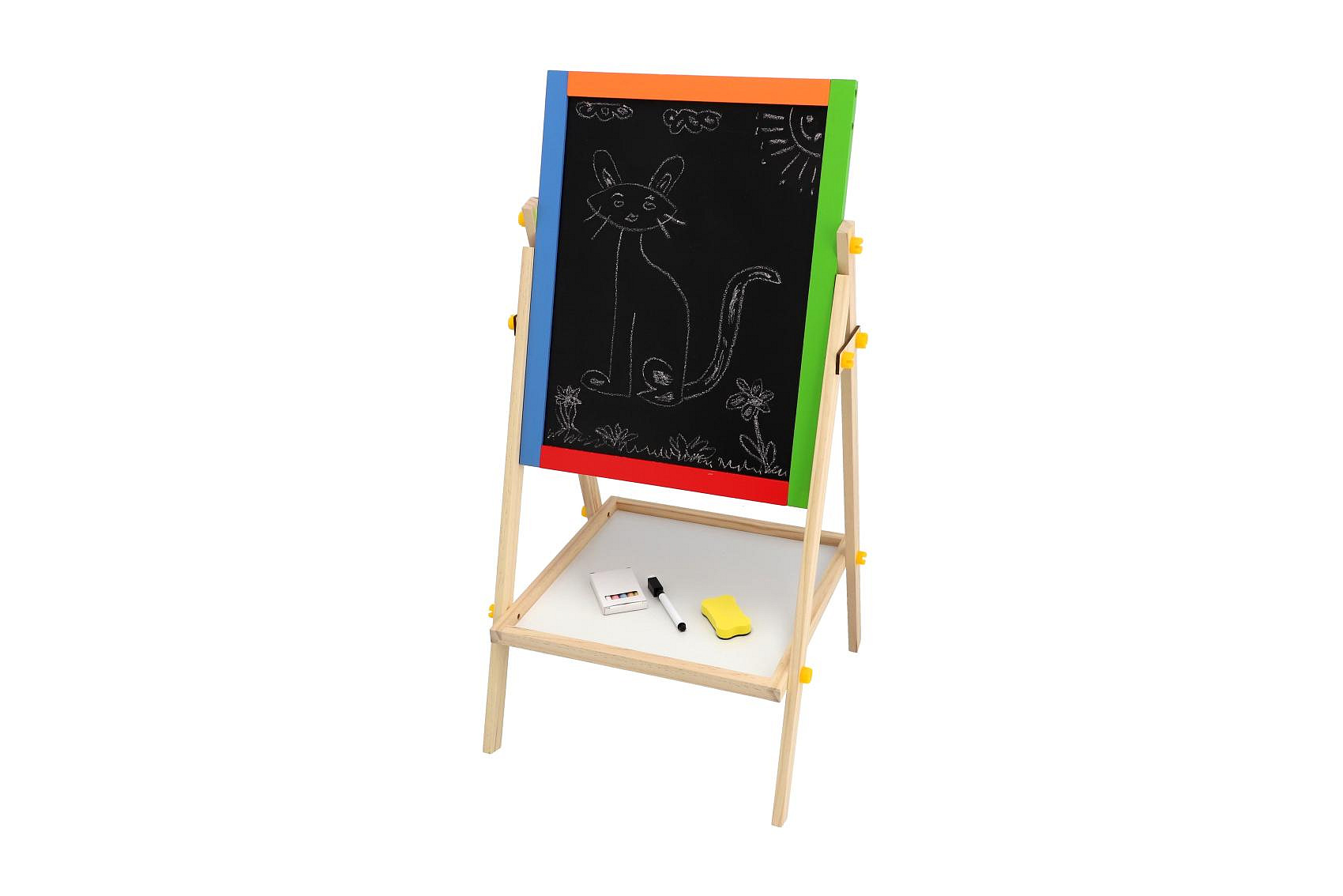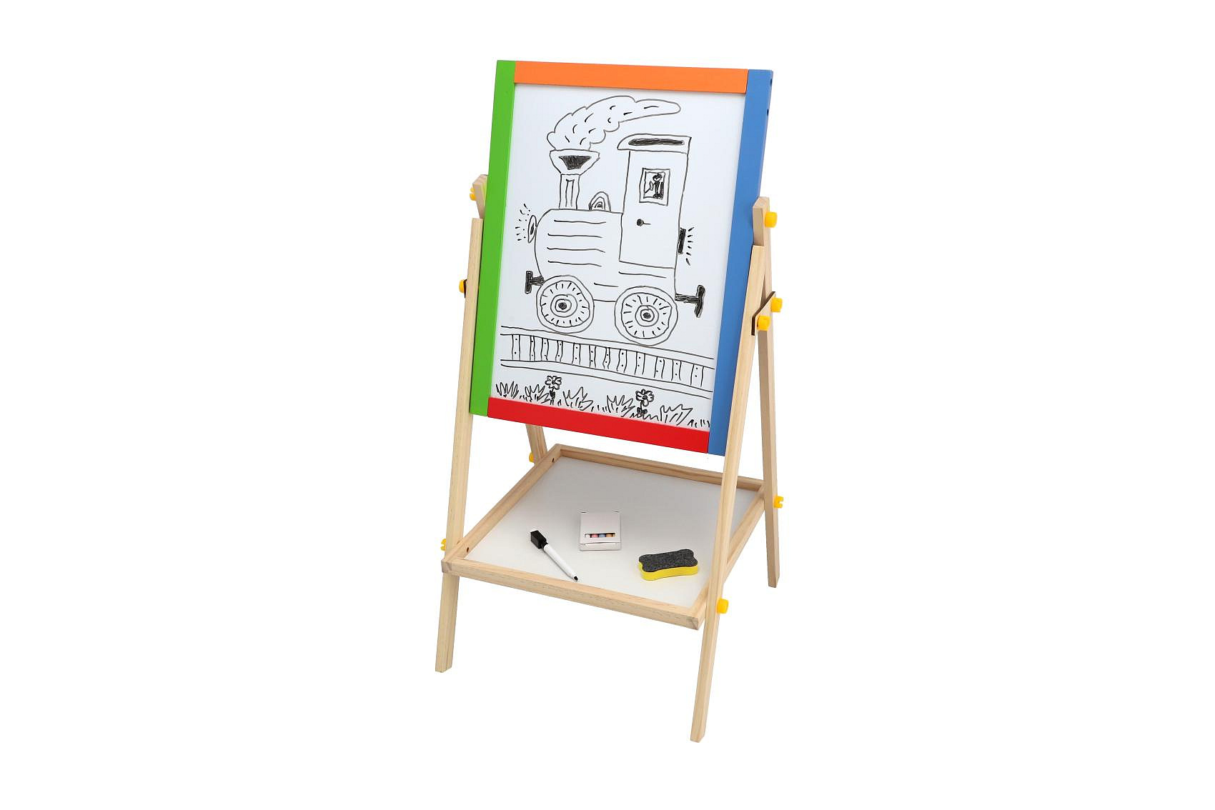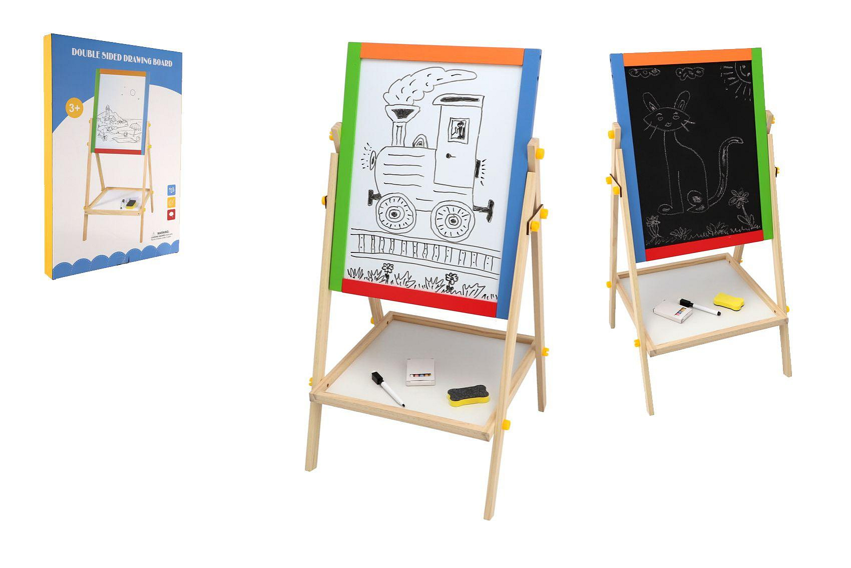 Praktická oboustranná dětská tabule nabízí spoustu možností pro kreslení, psaní i učení. Jedna strana je bílá magnetická – ideální pro fixy a magnetky, druhá černá pro kreslení křídou. Díky tomu si děti užijí dvojnásobnou zábavu. Stabilní dřevěná konstrukce zajišťuje bezpečné používání a zároveň skvěle zapadne do každého dětského