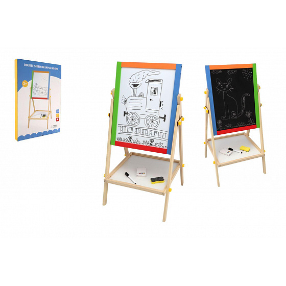 Opis Teddies Tabule oboustranná magnetická dřevo černá/bílá 35x43cm s doplňky v krabici 44x63cm
