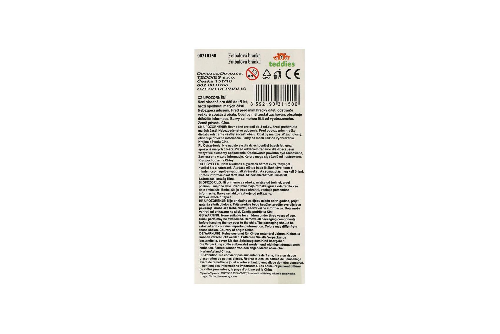 Opis Teddies Bramka piłkarska 70x56x37cm z piłką i pompką w pudełku 51x13x7,5cm