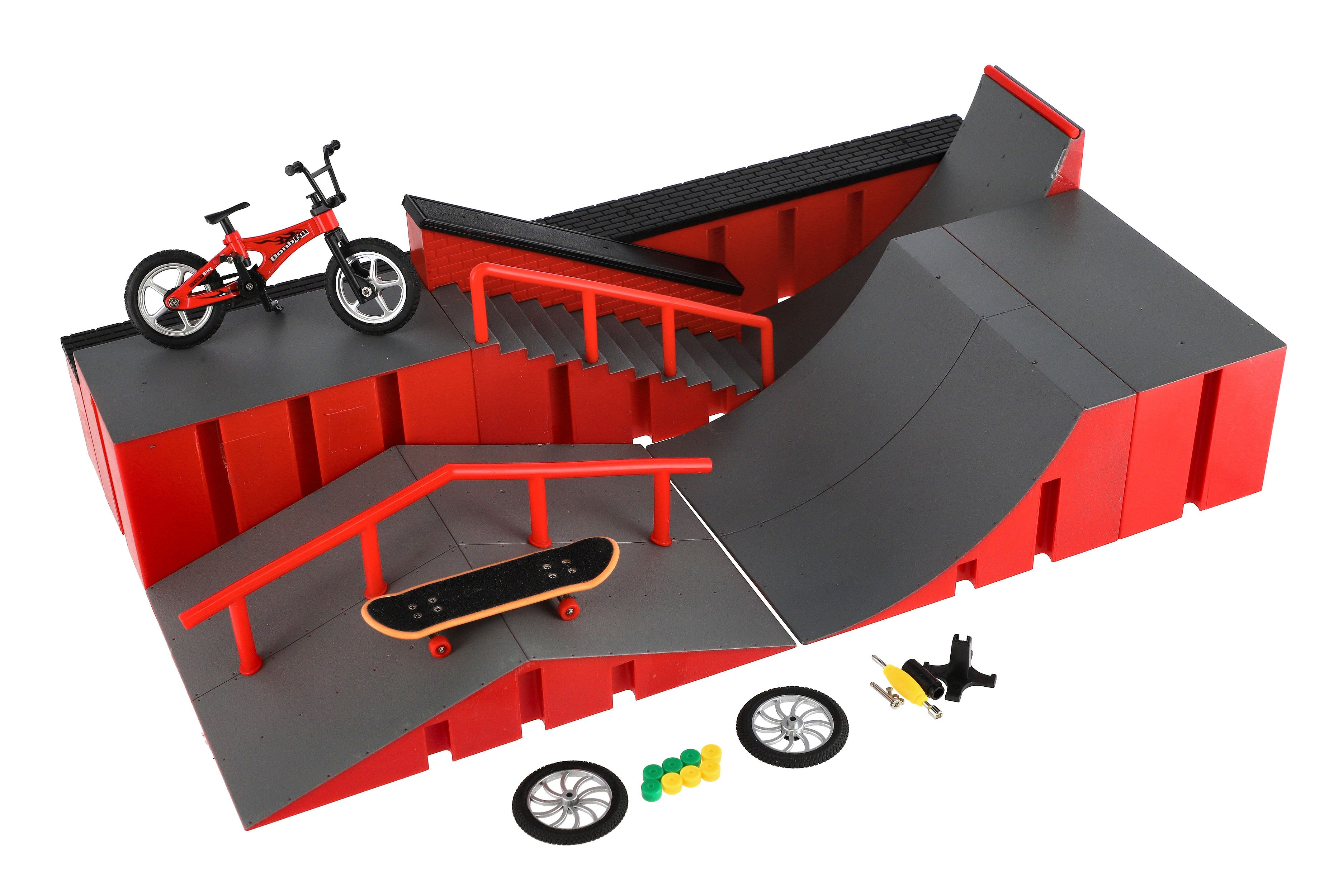 Užijte si zábavu s velkou sadou na fingerboarding! Set obsahuje skateboard, kolo a super rampu pro triky. Přizpůsobitelný díky šroubovacím komponentům. Rozměry balení: 43 x 25 x 12 cm Vhodné pro děti od 3 let