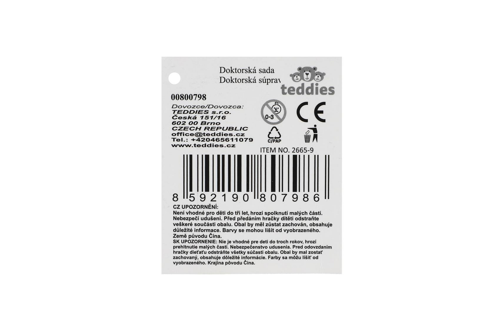 Opis Teddies Zestaw lekarski z akcesoriami tkanina/plast w materiałowej walizce