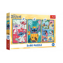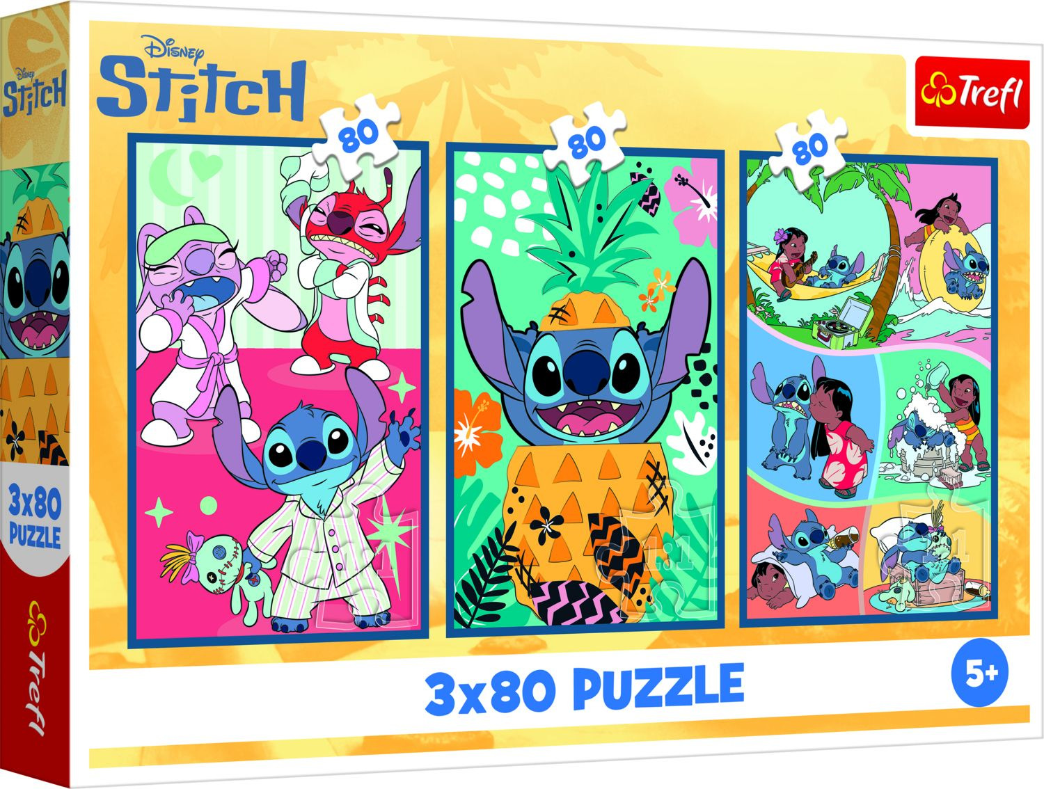 Opis Trefl Puzzle 3x80 Lilo&Stitch - Stitch's World 18x27,5cm w pudełku 29x19x4cm