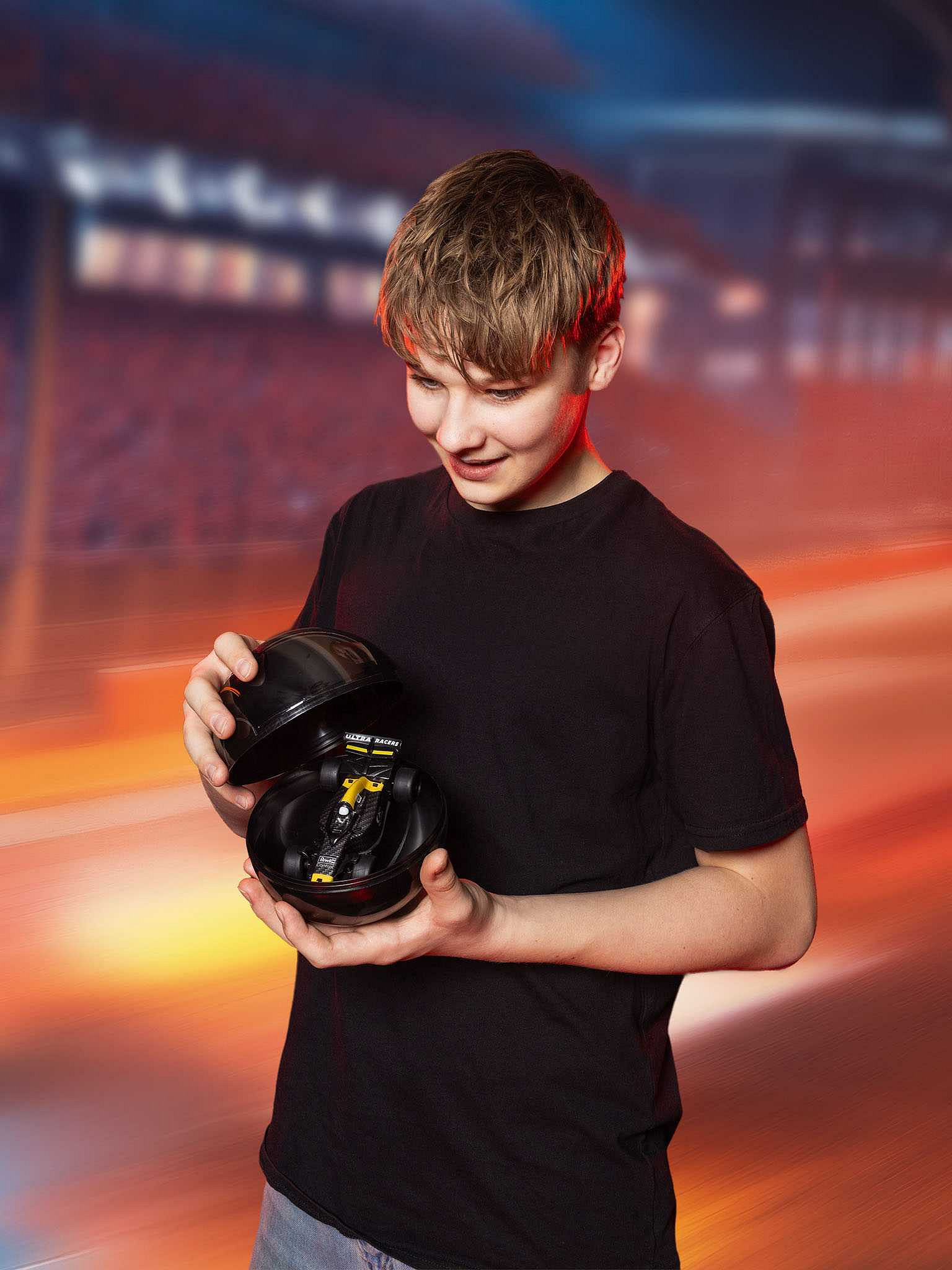 Váš závod s překvapením právě začíná! Jste připraveni na maximální vzrušení ještě dřív, než odstartujete? S Ultra Racers – Series 2 si nekupujete jen auto na dálkové ovládání, kupujete si tajemství! V každé stylové plechovce je ukryt jeden ze šesti rychlých závodníků ze série „Formula Speed“. Který design vybalíte právě vy? Možná budete mít štěstí a najdete vzácný a vysoce ceněný „Ultra Race Design“! Proč jsou tito mini závodníci taková jízda? Moment překvapení: Nikdy nevíte, který ze 6 cool designů na vás vykoukne. Hon na vzácný „Ultra Race Design“ je v plném proudu! Kapesní raketa: S délkou pouhých 7 cm se tito rychlíci vejdou do každé kapsy. Ideální pro spontánní závody na stole v družině nebo na chodbě. Závody bez rušení: Díky technologii 2,4 GHz můžete s kamarády ovládat více aut najednou. Žádné křížení signálů, jen čistý souboj o prvenství! Noční rallye: Díky LED osvětlení vypadají formule skvěle i za šera nebo při projíždění tunelů pod postelí. Okamžitá akce: Jednoduché ovládání zvládnou děti už od 4 let. Baterie vydrží až 15 minut čisté závodní jízdy. Obsah balení: 1x model Ultra Racer (náhodný design ze Série 2) 1x 2,4 GHz dálkové ovládání Návod k použití