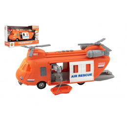 Opis Teddies Vrtulník záchranářský plast 28cm na setrvačník na bat. se světlem se zvukem v krabici 32x19x12cm