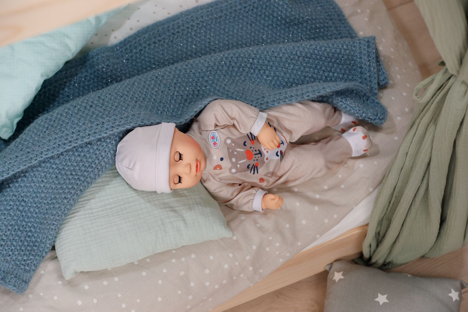 BABY born Anna je skvělá na mazlení. Díky svému měkkému látkovému tělíčku a praktické velikosti je ideální první kamarádkou na hraní pro ty nejmenší. Působí obzvlášť hebce a poskytuje pocit bezpečí při hraní i usínání. Když ji po lahvičce uložíte ke spánku, její oči se jemně zavřou, jako by pokojně usínala. Kromě lahvičky má Anna jednoduché béžové dupačky s roztomilým potiskem tygříka. Roztomilý design a pečlivě zpracované detaily dělají z oblečku opravdový originál. Čepička celý komplet krásně doplňuje a dělá z Anny perfektní společnici pro každé dobrodružství a mazlení. • Panenka (36 cm) s měkkým tělíčkem pro nejmenší • S mrkacíma očima • S lahvičkou, dupačkami a čepičkou • Vhodná pro děti od 1 roku