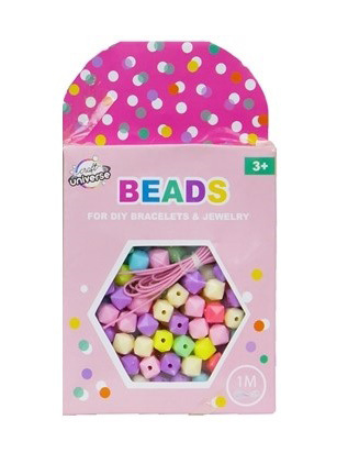 Zestaw kolorowych koralików w pięknym papierowym pudełku, w zestawie znajduje się również 1 metr sznurka do nawlekania koralików, koraliki można łatwo nawlekać i tworzyć z nich bransoletki i naszyjniki - dla siebie lub dla przyjaciół, można łączyć z innymi rodzajami koralików z kolekcji (12 rodzajów)