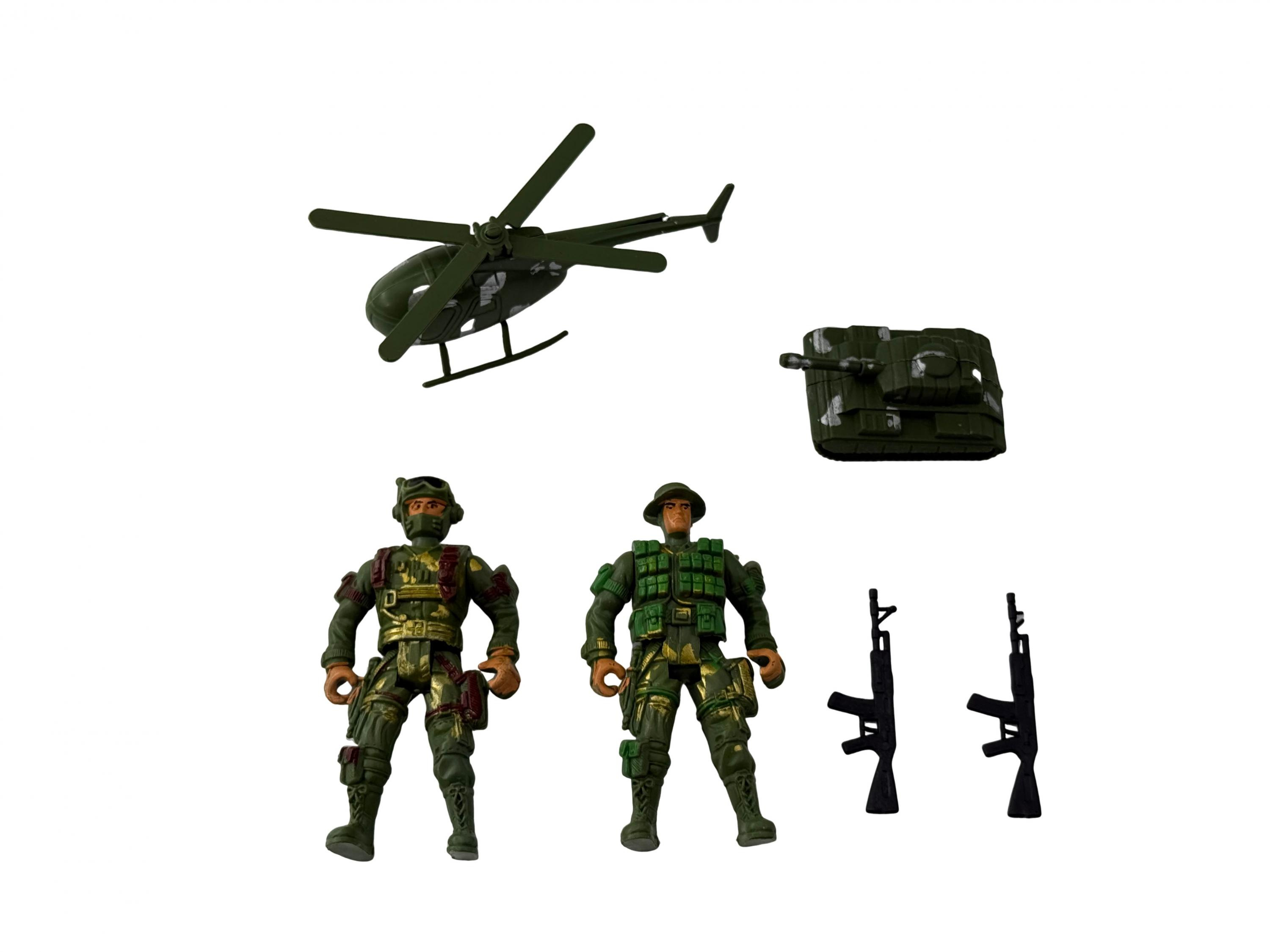 10 żołnierzy i 2 pojazdy wojskowe. Wykonane z tworzywa sztucznego.