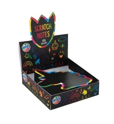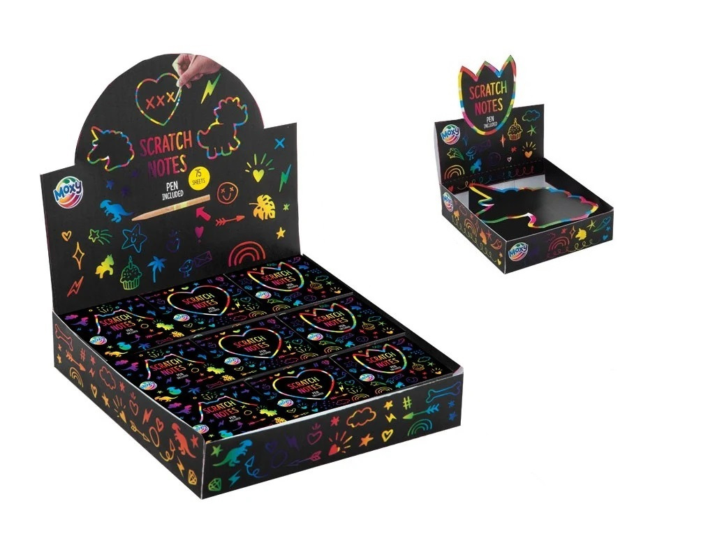 Notatniki/papiery do zdrapywania – zapakowane w tekturowe pudełko, w którym znajdziesz 75 zdrapywanych kartek i zdrapywacz, 9x9x4 cm