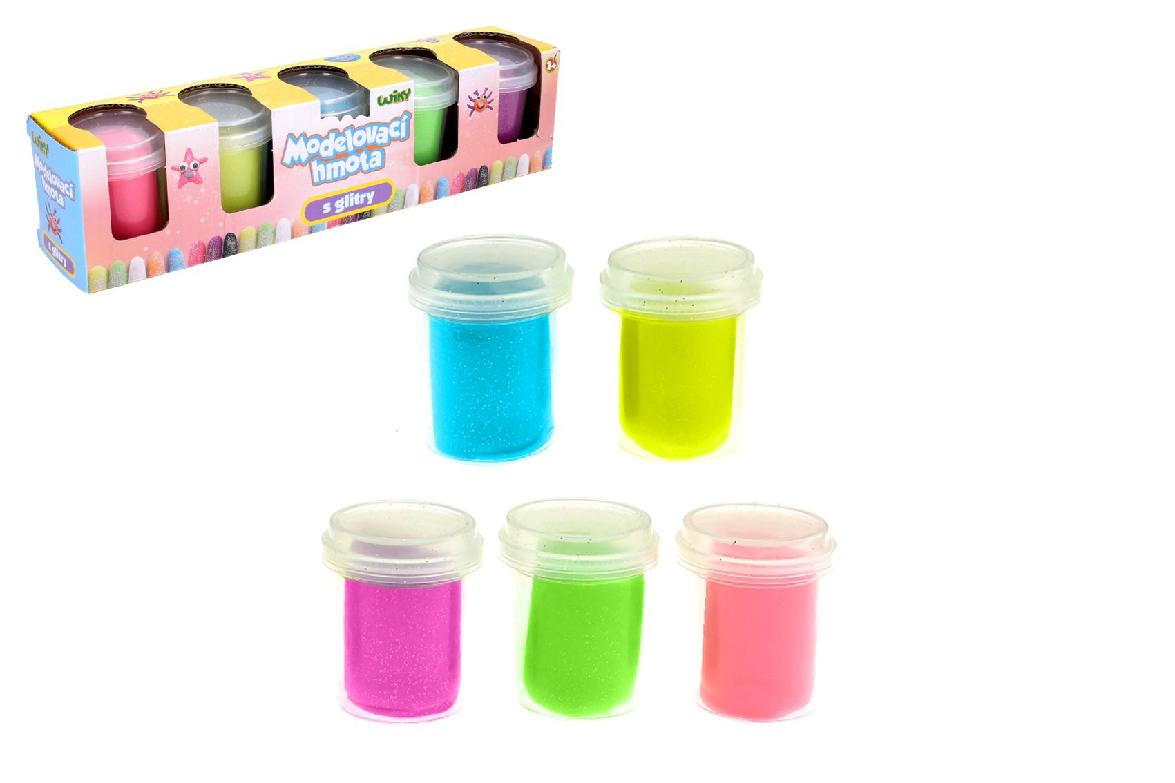 Popis Plastelína/modelína s glitry 5x56g v kelímku v krabičce 27x7x6cm
