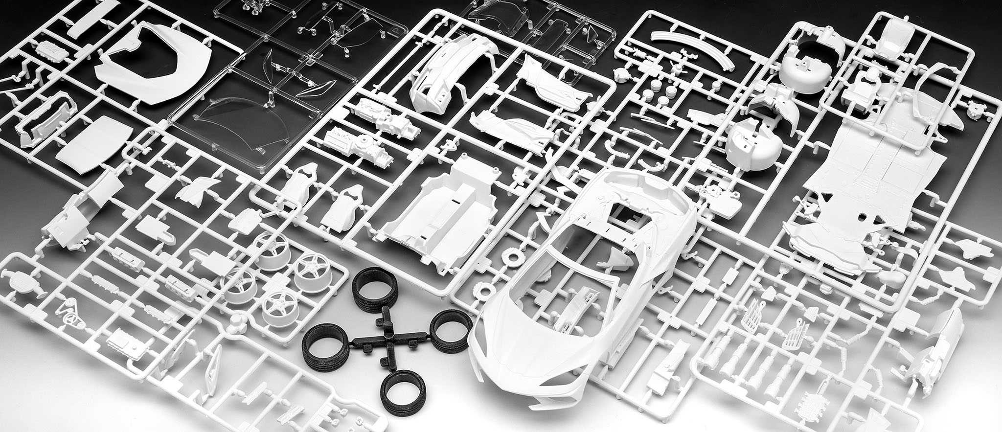 Model auta ke slepení. Velikost: 1:24; 20,3 cm. Balení obsahuje: 79 dílků ke slepení.
