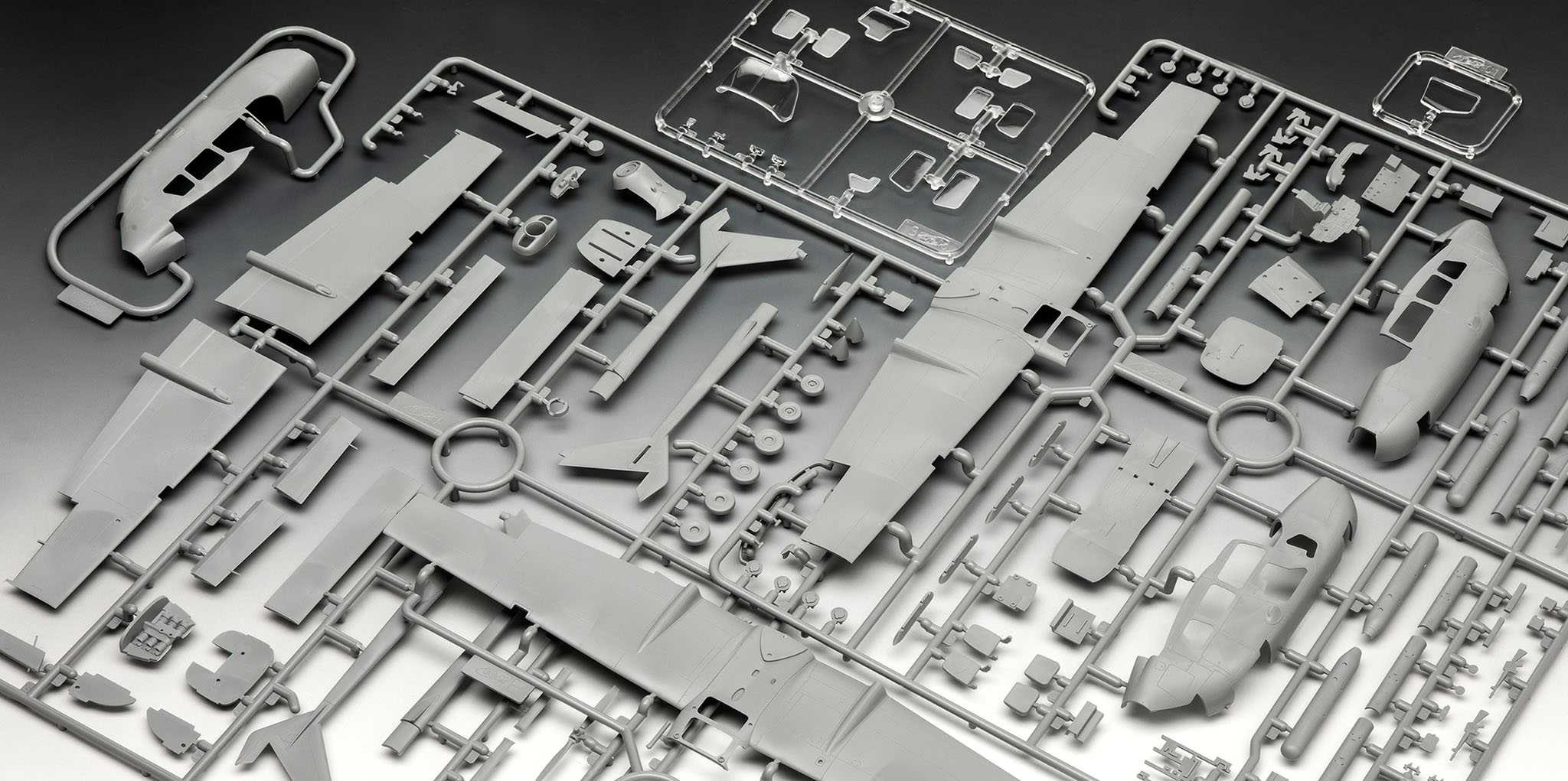 Model letadla ke slepení. Velikost: 1:48; 18,8 cm. Balení obsahuje: 171 dílků ke slepení.