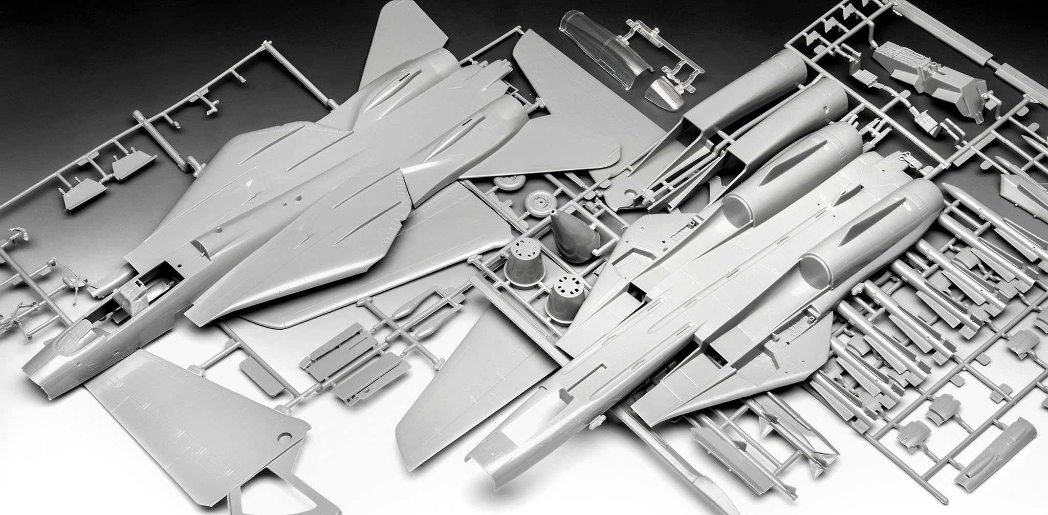 • Detailní pilotní kabina • Figurka pilota • Pohyblivá křídla s měnitelnou geometrií • Sada obtisků pro ztvárnění F-14 z filmu „Top Gun“