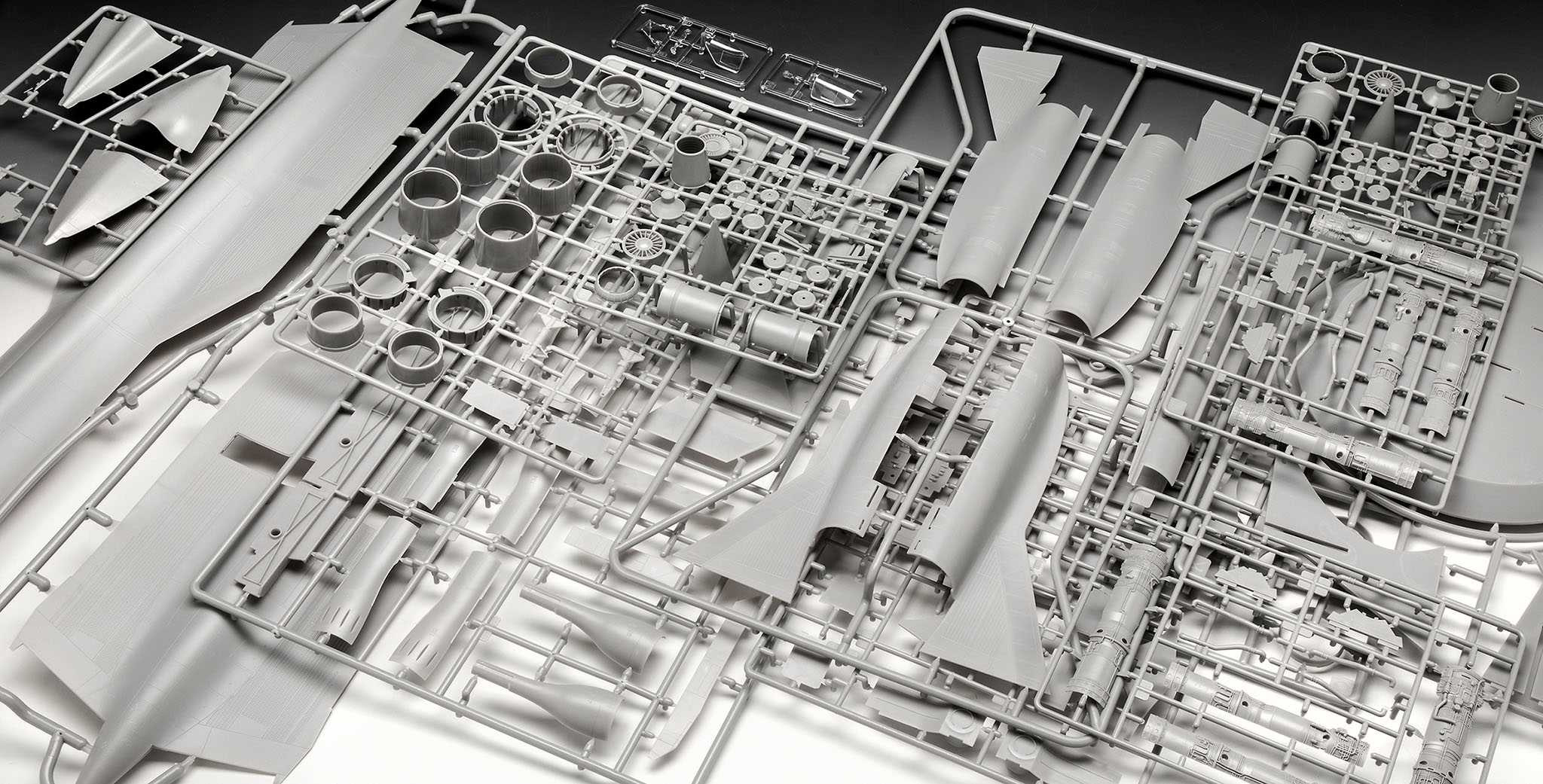 Model letající střely ke slepení. Velikost: 1:32; 26,1 cm. Balení obsahuje: 58 dílků ke slepení.