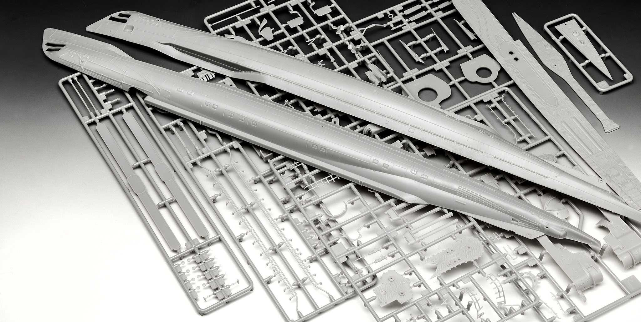 Model ponorky ke slepení. Velikost: 1:144; 53,1 cm. Balení obsahuje: 115 dílků ke slepení.