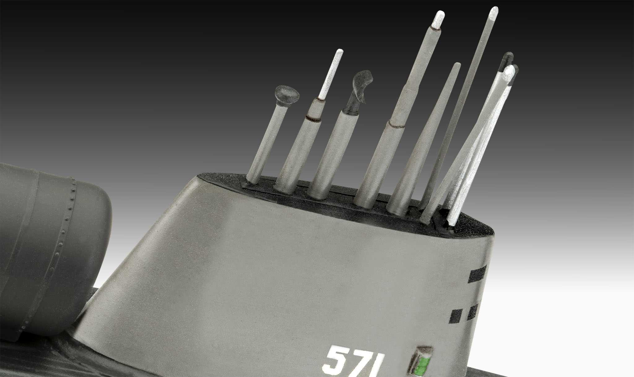 Speciální vlastnosti: Věrná replika s precizně navrženými vnějšími detaily a autentickou povrchovou strukturou Vysoce kvalitní plastové díly s vynikající přesností lícování pro snadnou montáž Detailní vyobrazení charakteristické věže a potápěčských buněk Věrné barevné schéma díky dodaným obtiskům