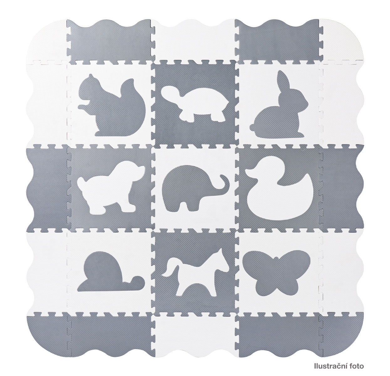 Pěnové díly s puzzle zvířátky slouží jako hračka i jako podložka na hraní a odpočinek. Boční díly se dají sestavit tak, že vytvoři ohrádku pro nejmenší děti. Barva výrobku je ilustrativní a přesný vzhled se může lišit (barevná kombinace bílá/šedá). Rozměr: 121 x 121 cm. Výška pěnového dílu: 1,3 cm. Věk: 3+
