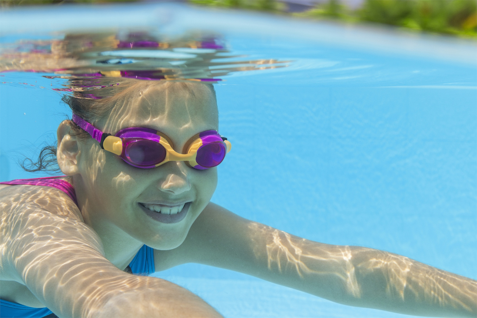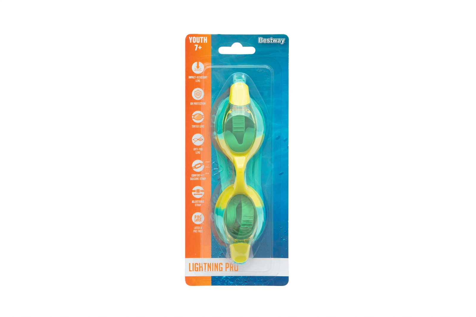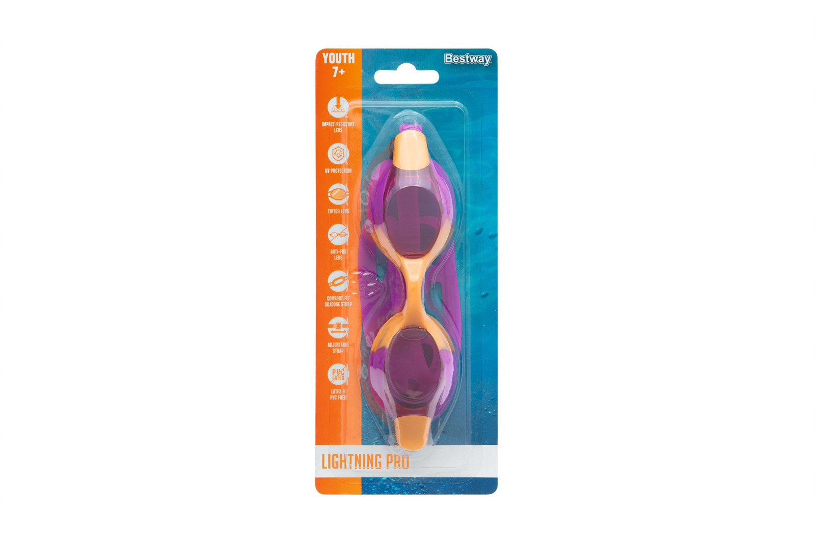 Plavecké brýle Bestway s polykarbonátovými čočkami ve tvaru leteckých brýlí s ochranným povrchem chránícím proti UV záření. Komfortní, dvojité těsnění lemu, které brání vnikání vody do brýlí. Plně nastavitelný pásek přes hlavu. 100% bez latexu. 3 barevné provedení - růžová, modrá, zelená . Obsahuje: 1 plavecké brýle. Věk: 3+