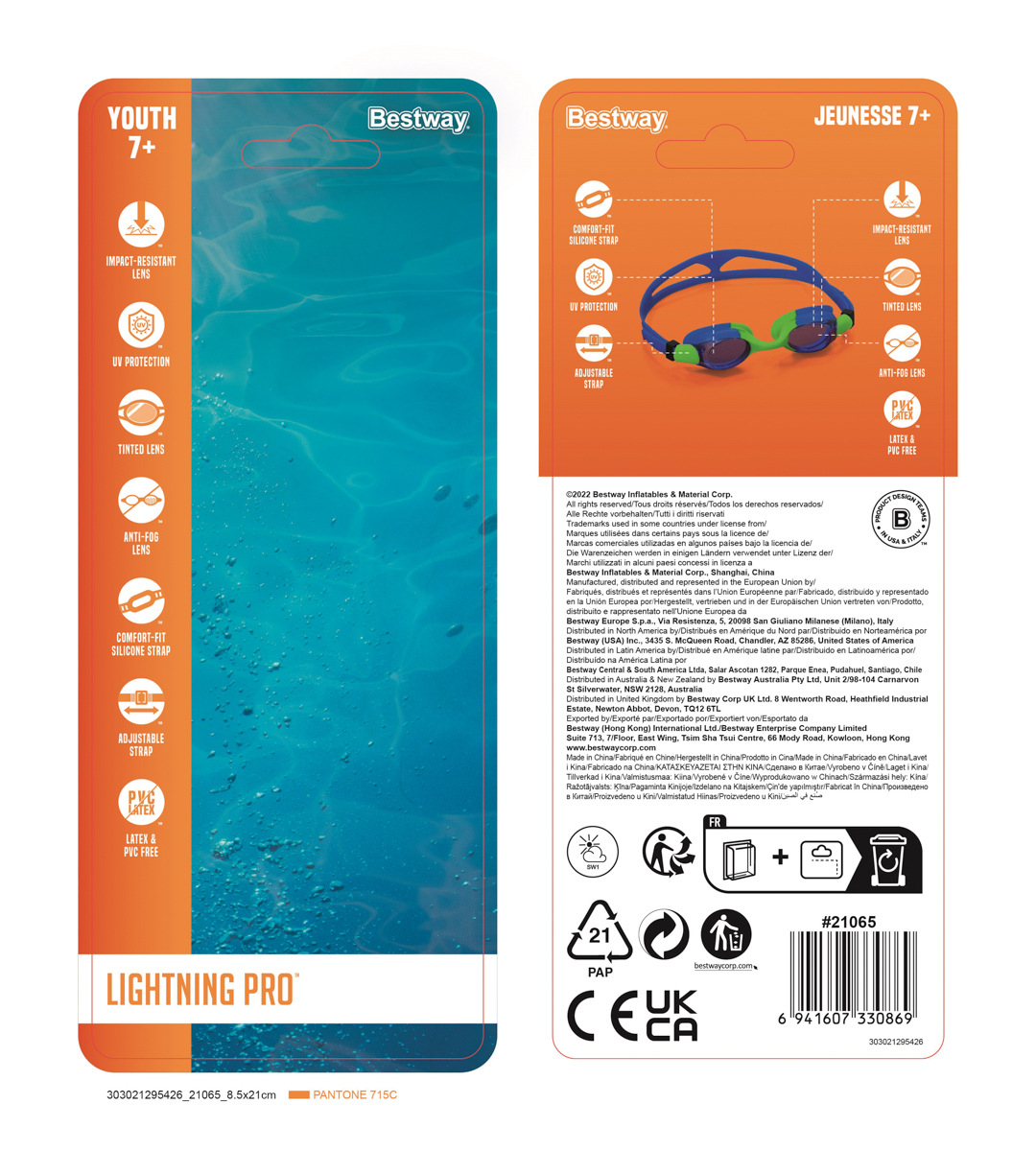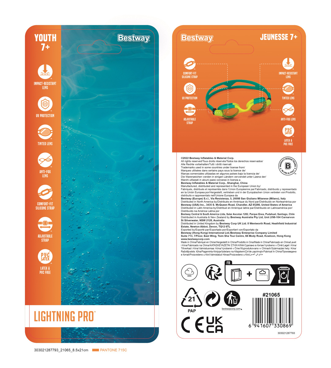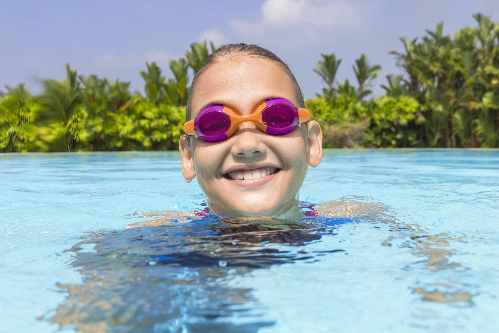 Plavecké brýle Bestway s polykarbonátovými čočkami ve tvaru leteckých brýlí s ochranným povrchem chránícím proti UV záření. Komfortní, dvojité těsnění lemu, které brání vnikání vody do brýlí. Plně nastavitelný pásek přes hlavu. 100% bez latexu. 3 barevné provedení - růžová, modrá, zelená . Obsahuje: 1 plavecké brýle. Věk: 3+