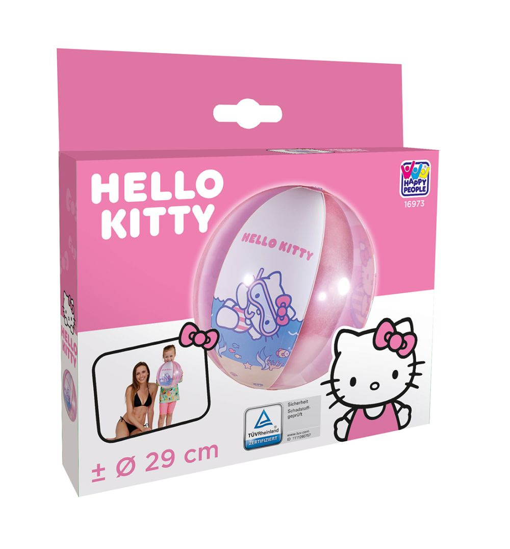 Plážový míč Hello Kitty, nafouknutý cca. 29 cm, vyfouknutý cca. 40 cm,3 panely transparentní růžová,