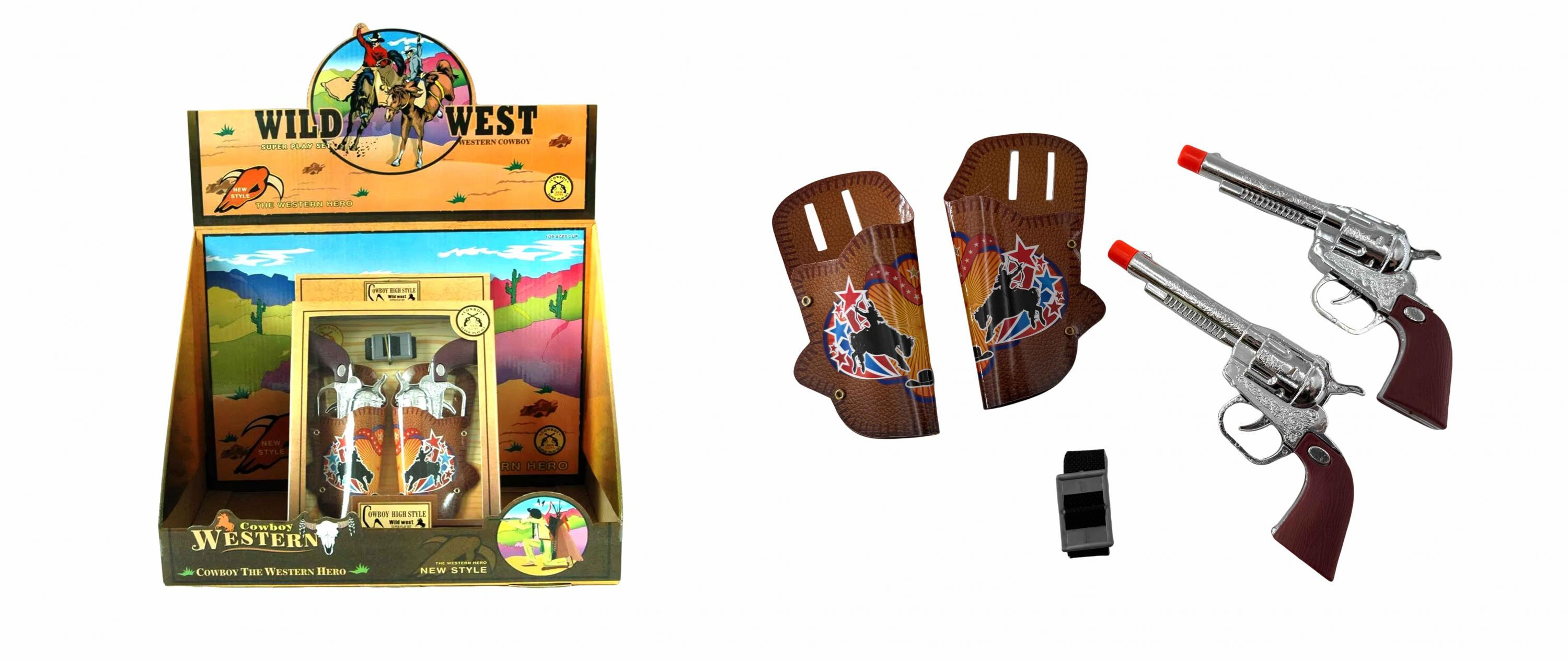 S touto sadou se z každého malého kluka stane odvážný kovboj, který se postaví nespravedlnosti a ochrání město. Ať už se chystá na souboj v poledne, nebo jen honí padouchy po obývacím pokoji, tyto kolty mu dodají ten správný kovbojský styl a pocit hrdinství.
