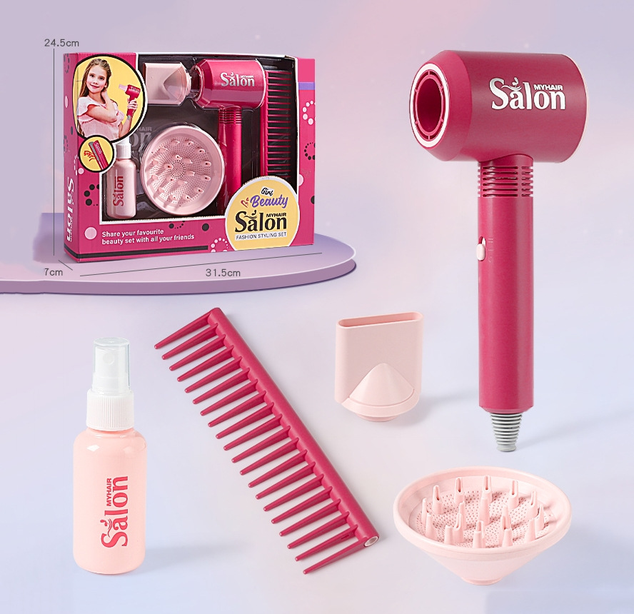 Součástí sady je super moderní fén a různé příslušenství pro kadeřnické hrátky. Fén je navržen tak, aby dětem dopřál realistický zážitek z hraní na kadeřnici.