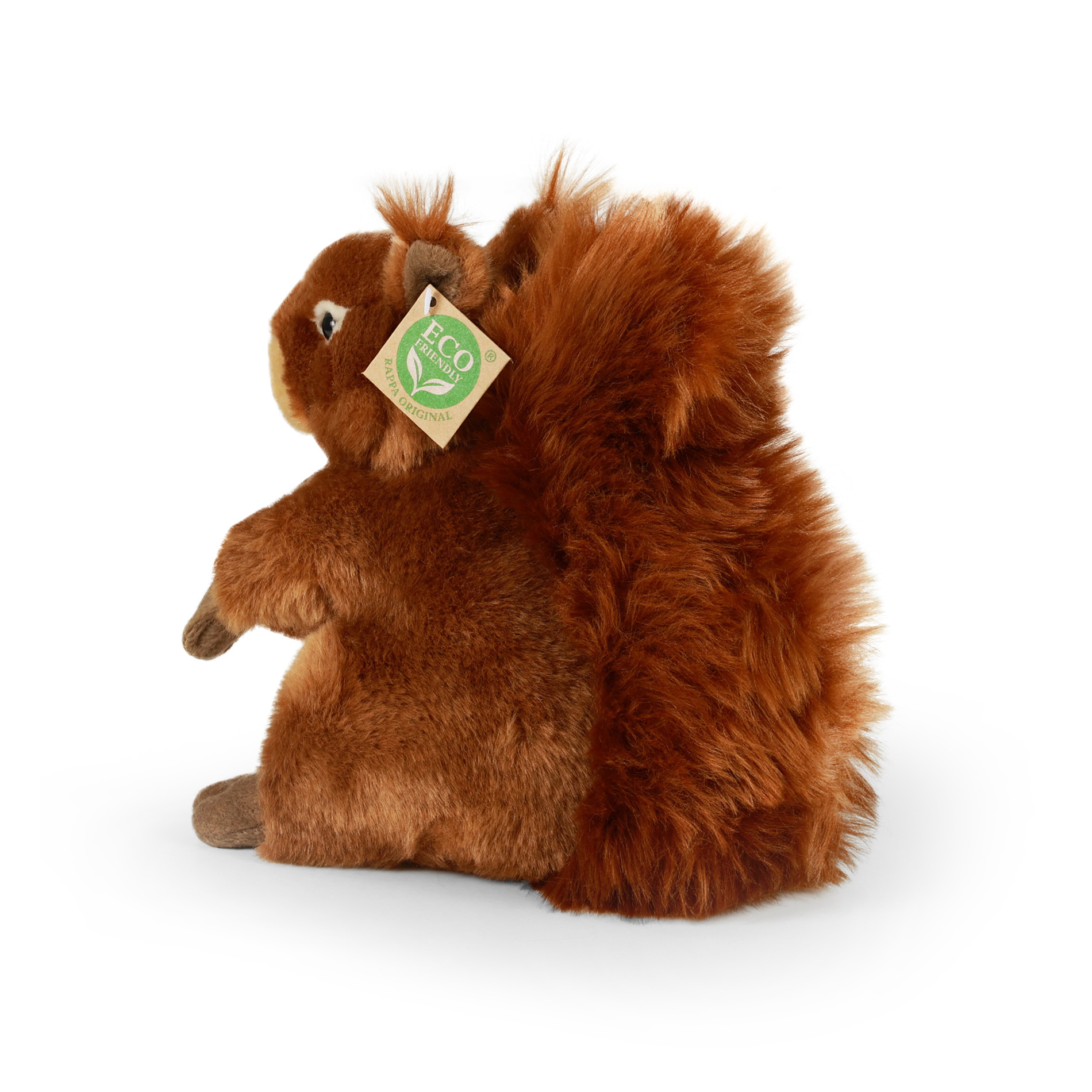 Plyšová veverka je ručně ušitá z vysoce kvalitní, jemné plyše a je tak součástí exkluzivní kolekce plyšových hraček RAPPA. Tato veverka se pyšní velikostí 21 cm, výskyt tohoto druhu byl zmapován nejčastěji na území dětského pokojíčku. Je typická svým hnědým zbarvením. Pro svůj roztomilý výraz se stává vítaným společníkem v jakékoliv chvíli. Rozhodli jsme se jít zelenou cestou co nejméně zatěžující životní prostředí - cestou ECO-FRIENDLY. Co to vlastně ECO-FRIENDLY znamená? Výplň plyšové hračky je vyrobena z recyklovaných PET lahví. Tento materiál je zcela bezpečný, na omak nerozeznatelný od standardní výplně a plně atestovaný pro bezpečnost i těch nejmenších.
